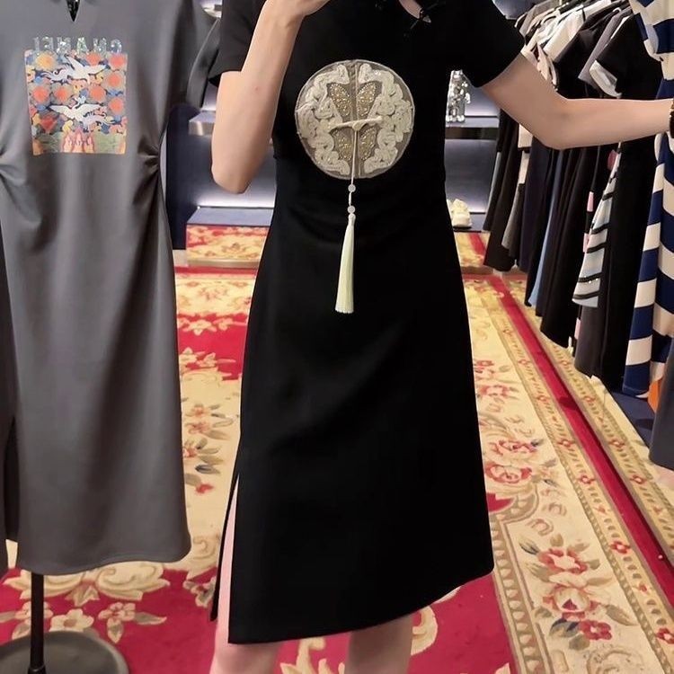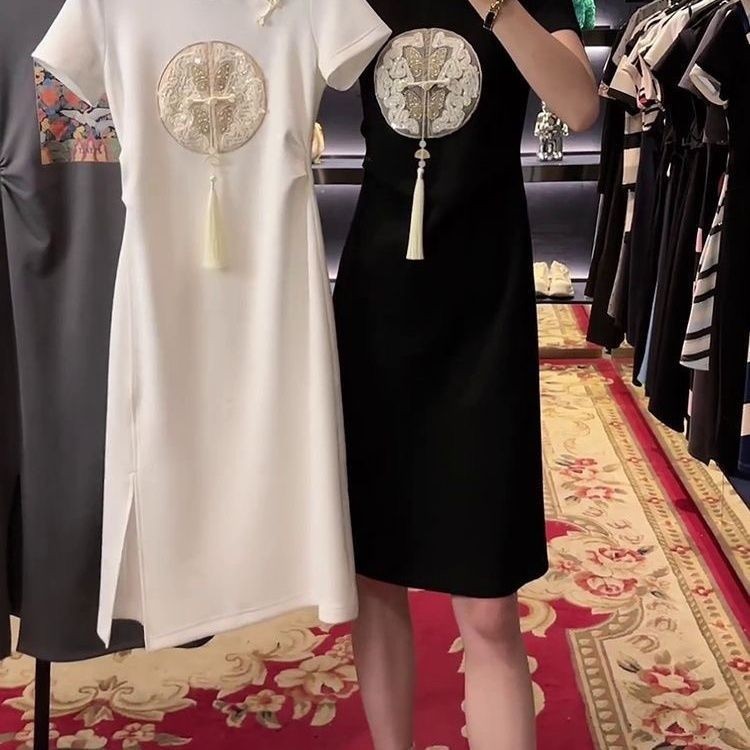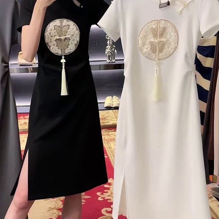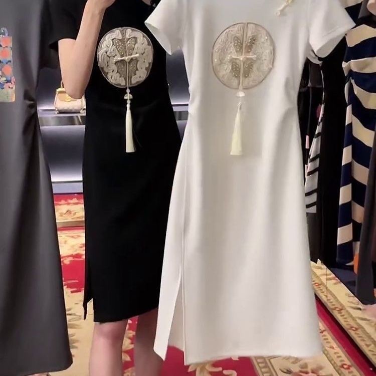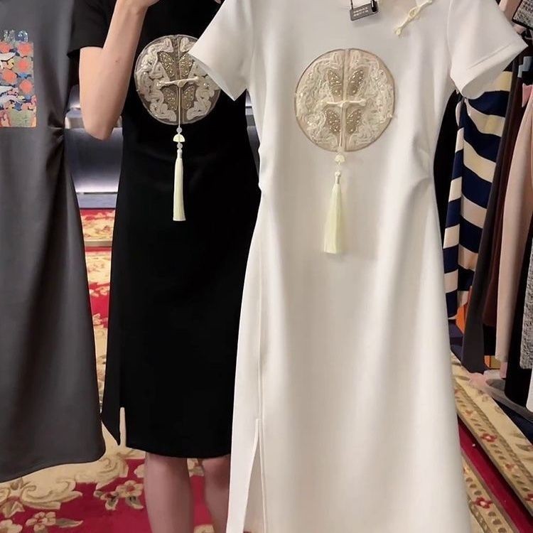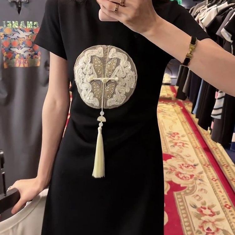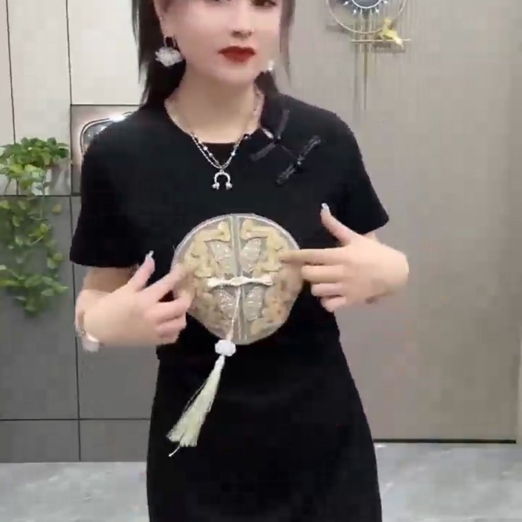 2025 สไตล์จีนปักหัวเข็มขัดชุดสไตล์ย้อนยุคฤดูร้อนสไตล์ใหม่เสื้อผ้าผู้หญิงเอวแคบ ผอมลง ดูแขนสั้นเสื้อยืดแขน [คลังสินค้าพร้อม]