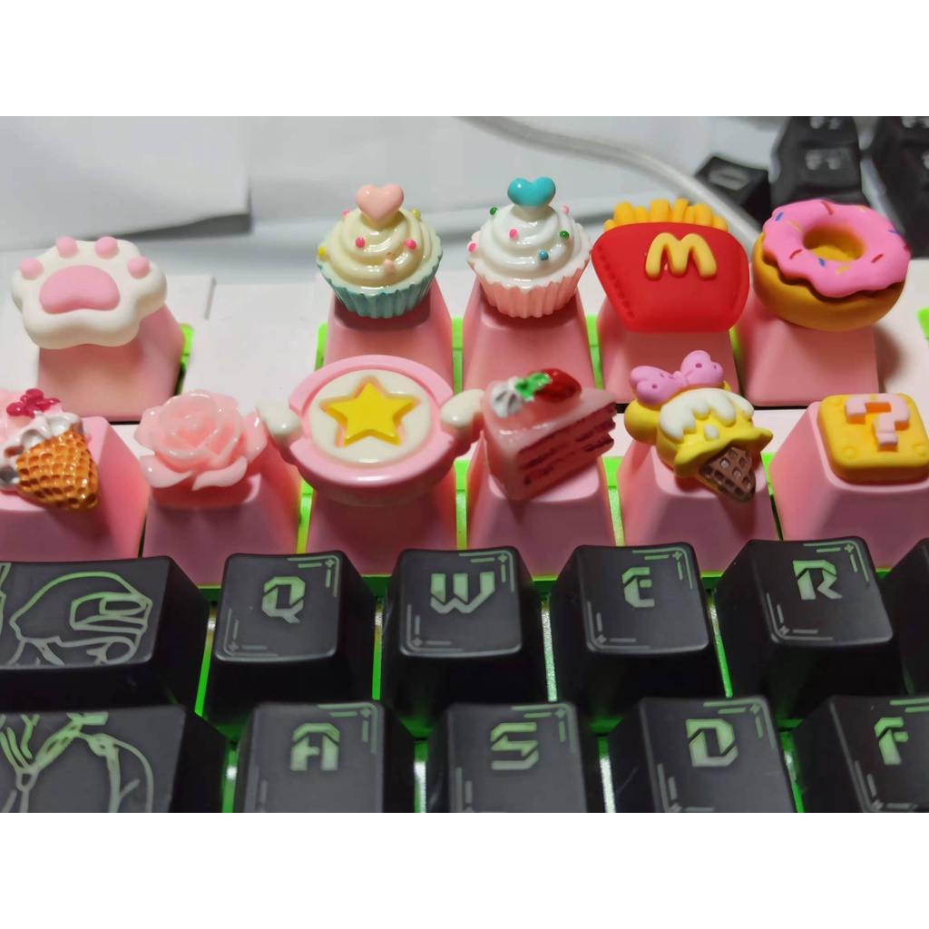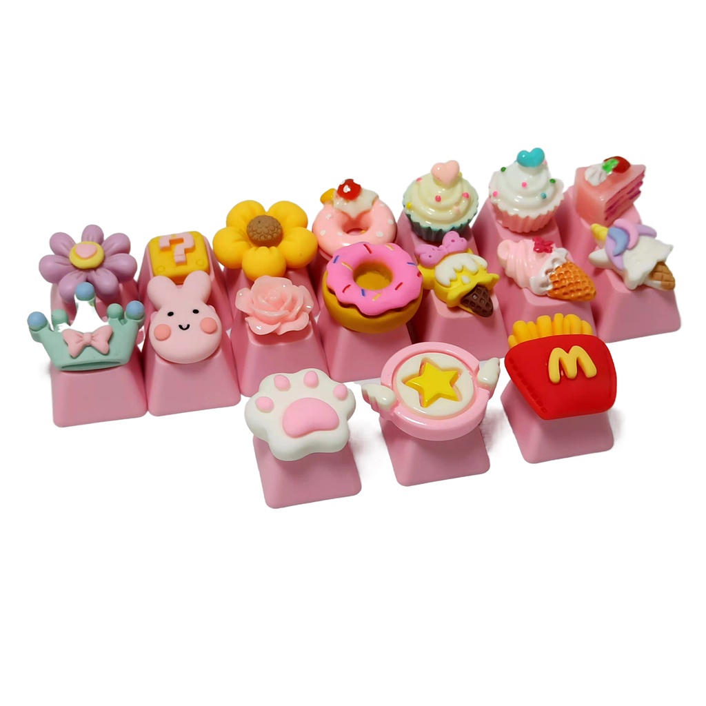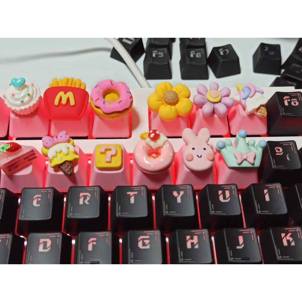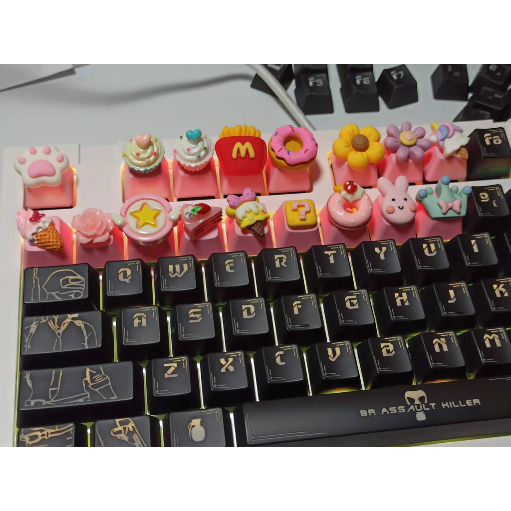 ปุ่มกดคีย์บอร์ด ABS PBT ลายน่ารัก สีชมพู สําหรับคีย์บอร์ด Mechanical