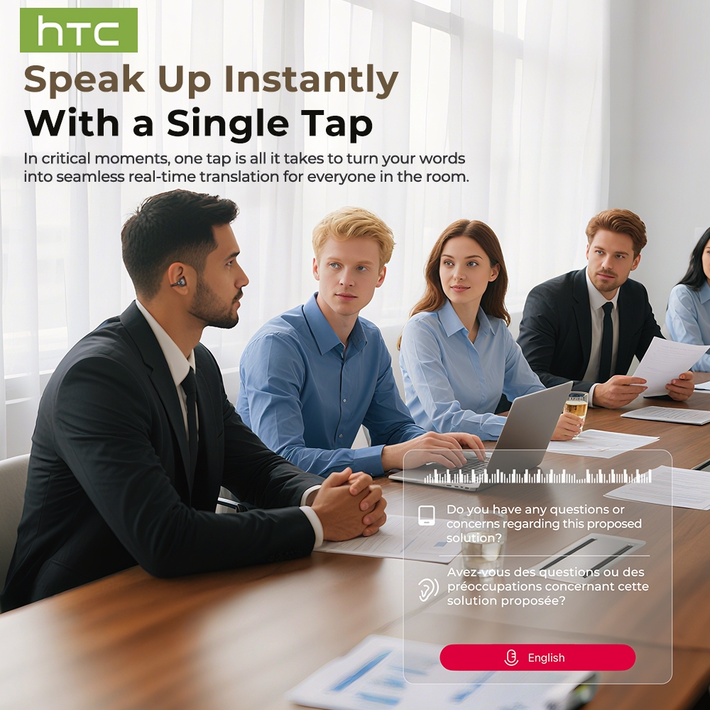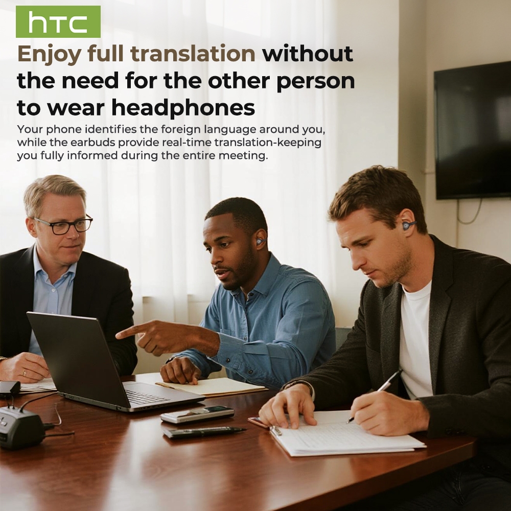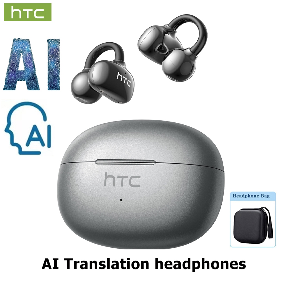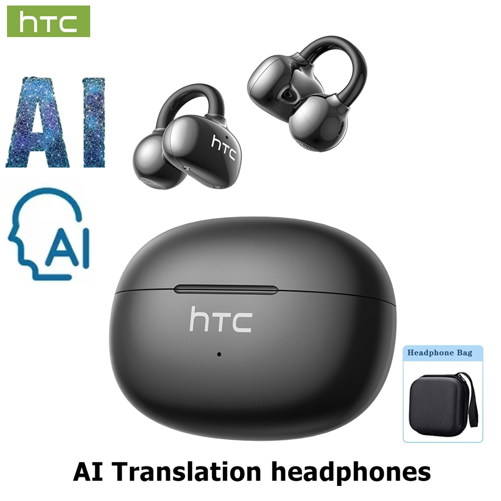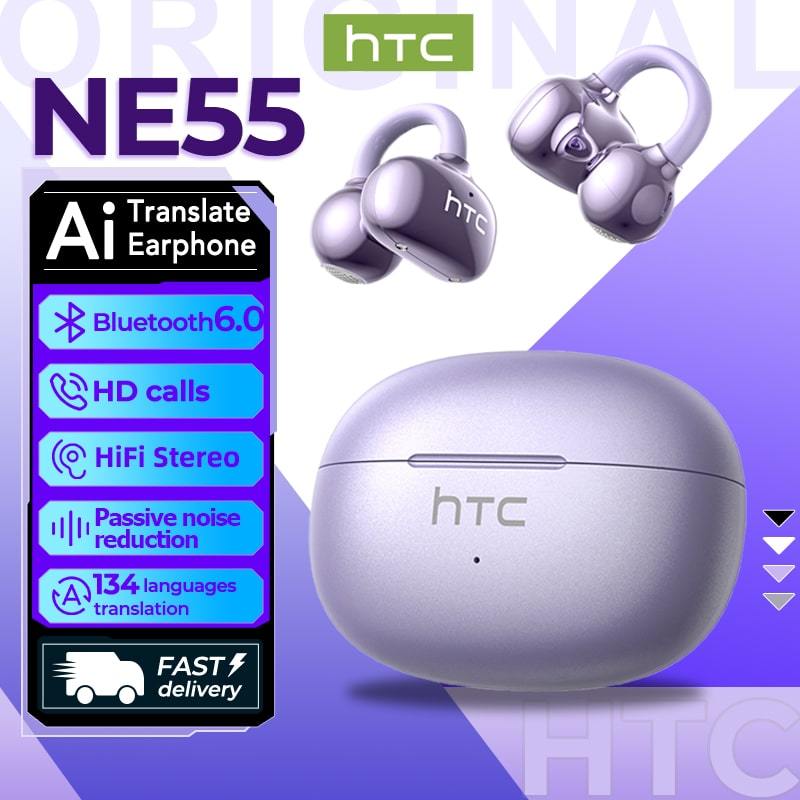 หูฟังไร้สายบลูทูธ HTC NE55 AI หูฟังนักแปล หูฟังบลูทูธ Bluetooth 6.0 หูฟัง แปลภาษา อัจริยะ หูฟัง เกี่ยว หู ไร้สาย หูฟังไร้สาย Latency ต่ําหูฟังแบบหนีบหูฟัง Translating เสียง Hi-Fi Noise Cancelling IPX4 กันน้ํา