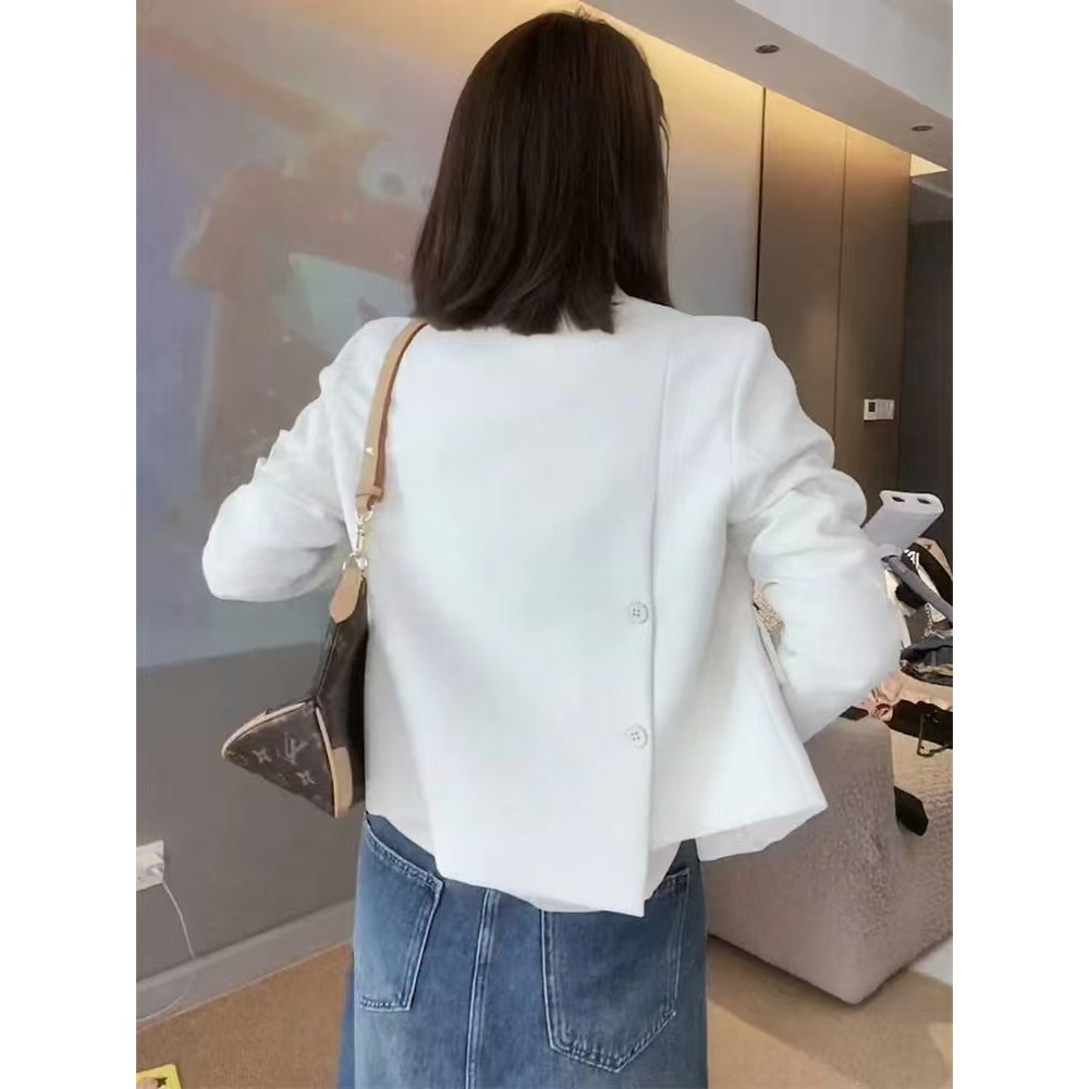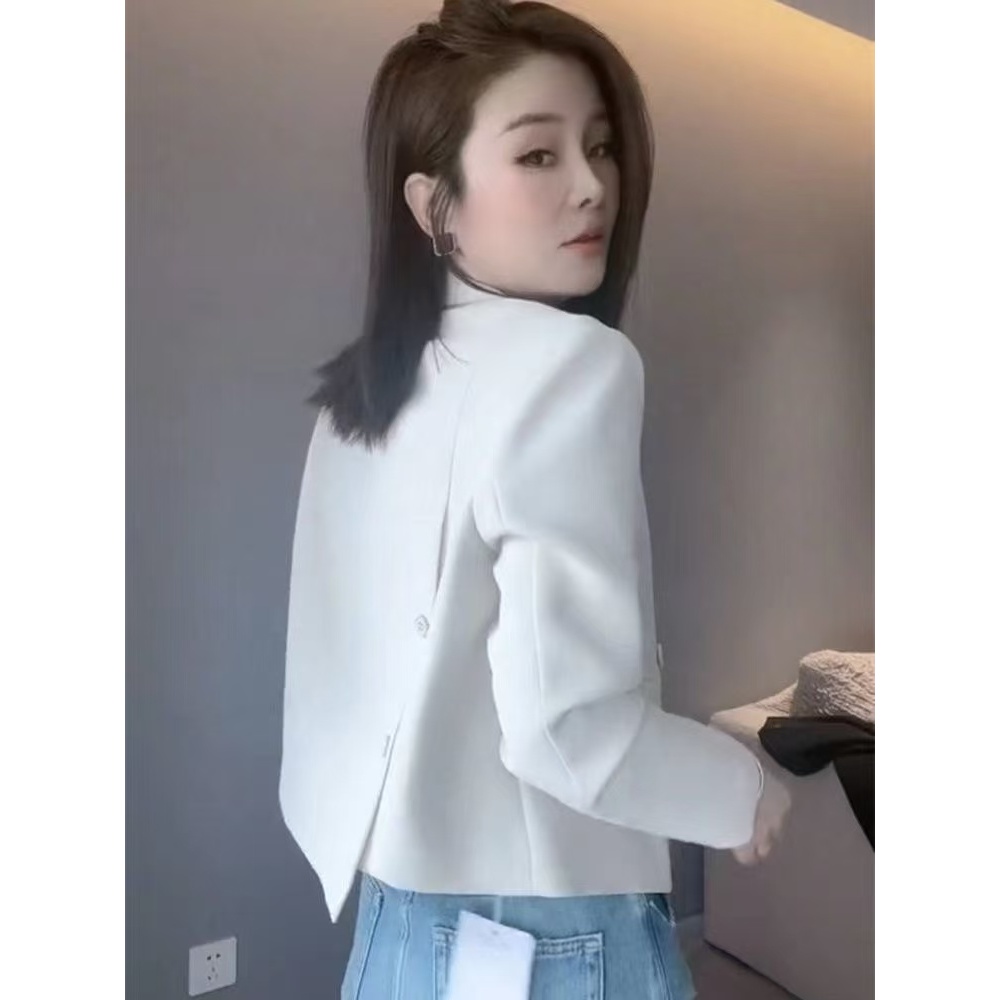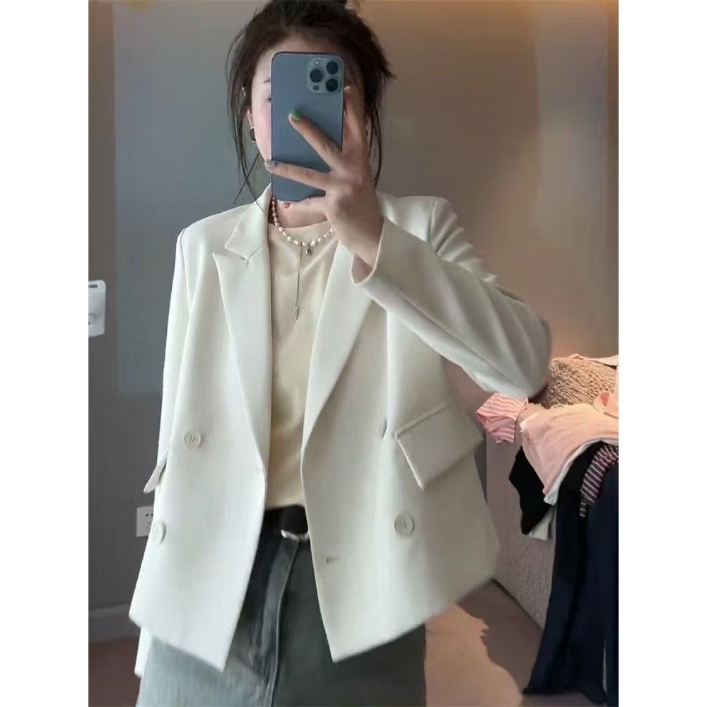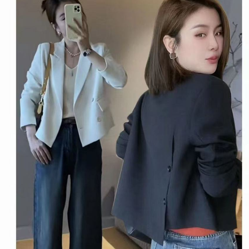 ผู้หญิงเกาหลีแฟชั่นหลวมย้อนยุคสีทึบเสื้อเบลเซอร์เสื้อแจ็คเก็ตพร้อมสต็อก