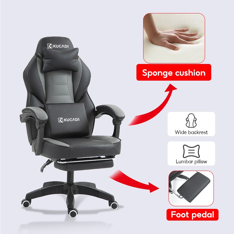 KUCADI ระดับไฮเอนด์ gaming chair เก้าอี้ เก้าอี้คอม เก้าอี้คุณภาพสูง การยศาสตร์ เก้าอี้เล่นเกมหรูหรา [รับประกัน 5 ปี]