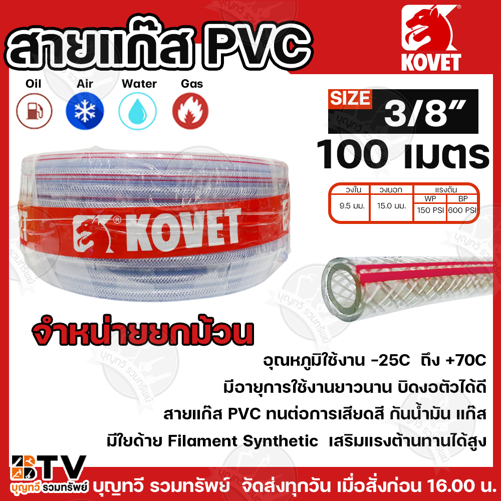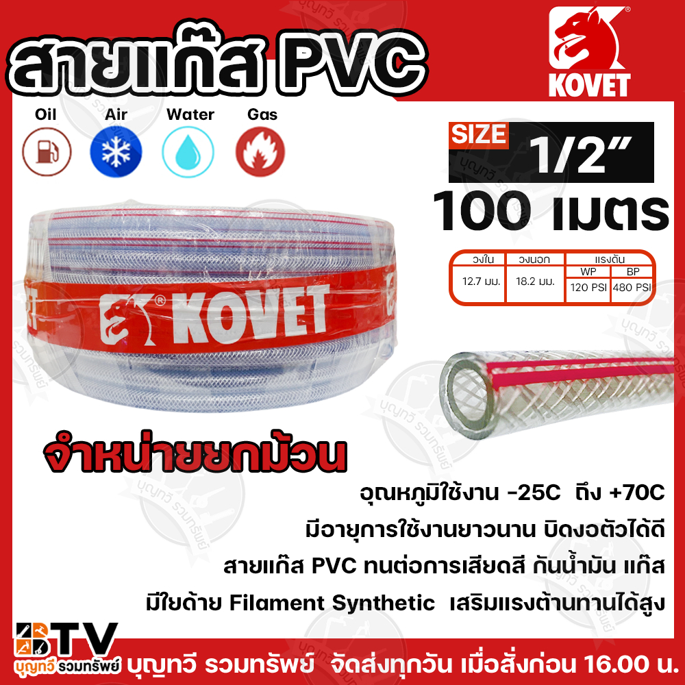 (ยกม้วน100เมตร) KOVET สายแก๊ส PVC พลาสติกใสใยด้าย อย่างดี มีให้เลือกหลาหลายขนาด สายท่อแก๊ส สายพีวีซีใส สินค้าพร้อมส่ง