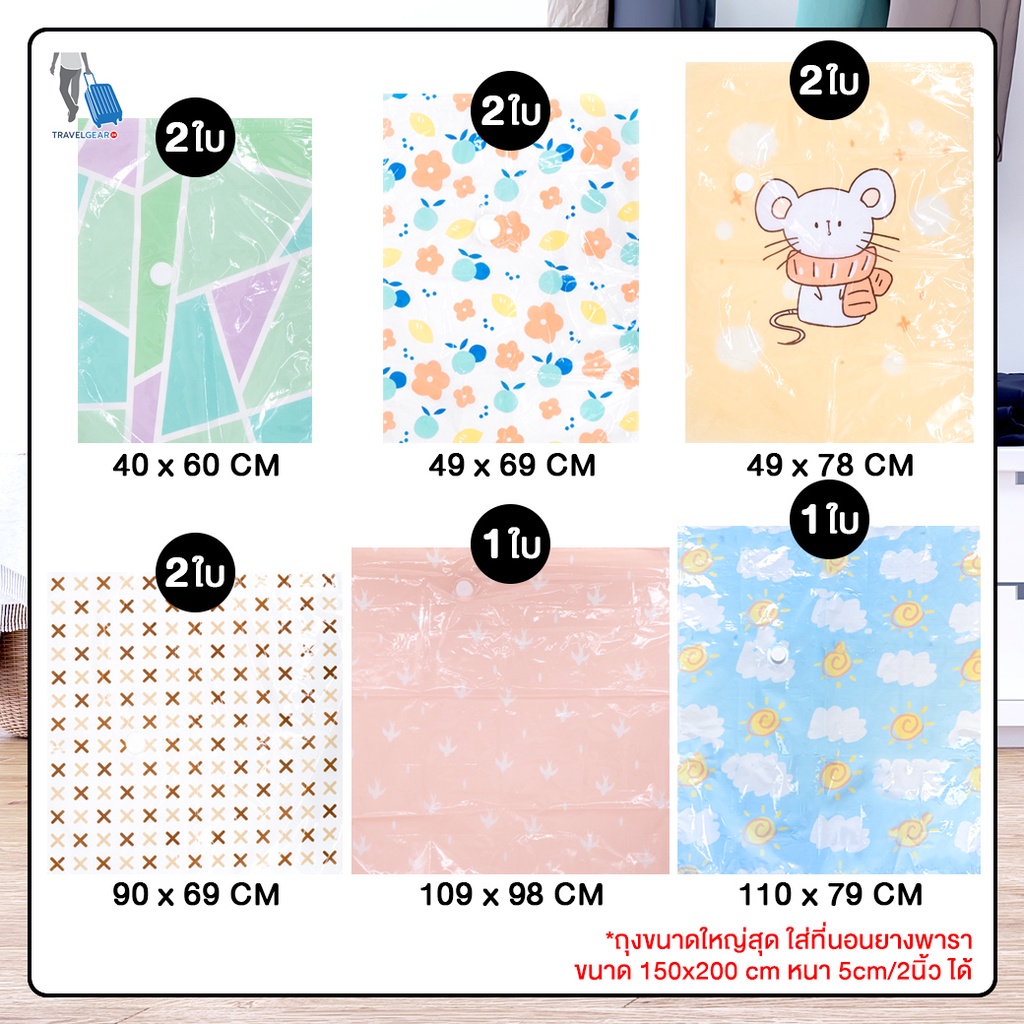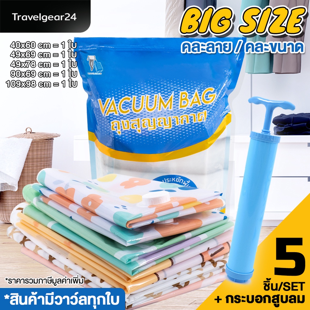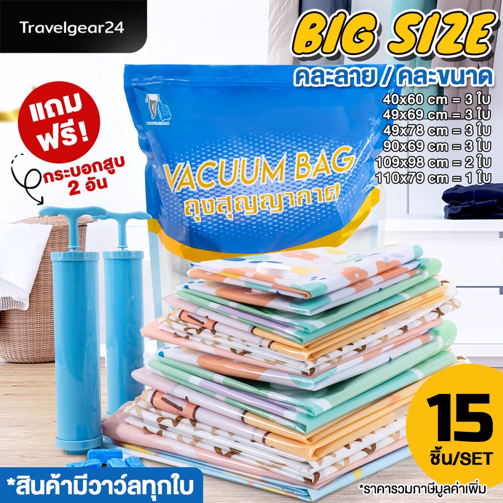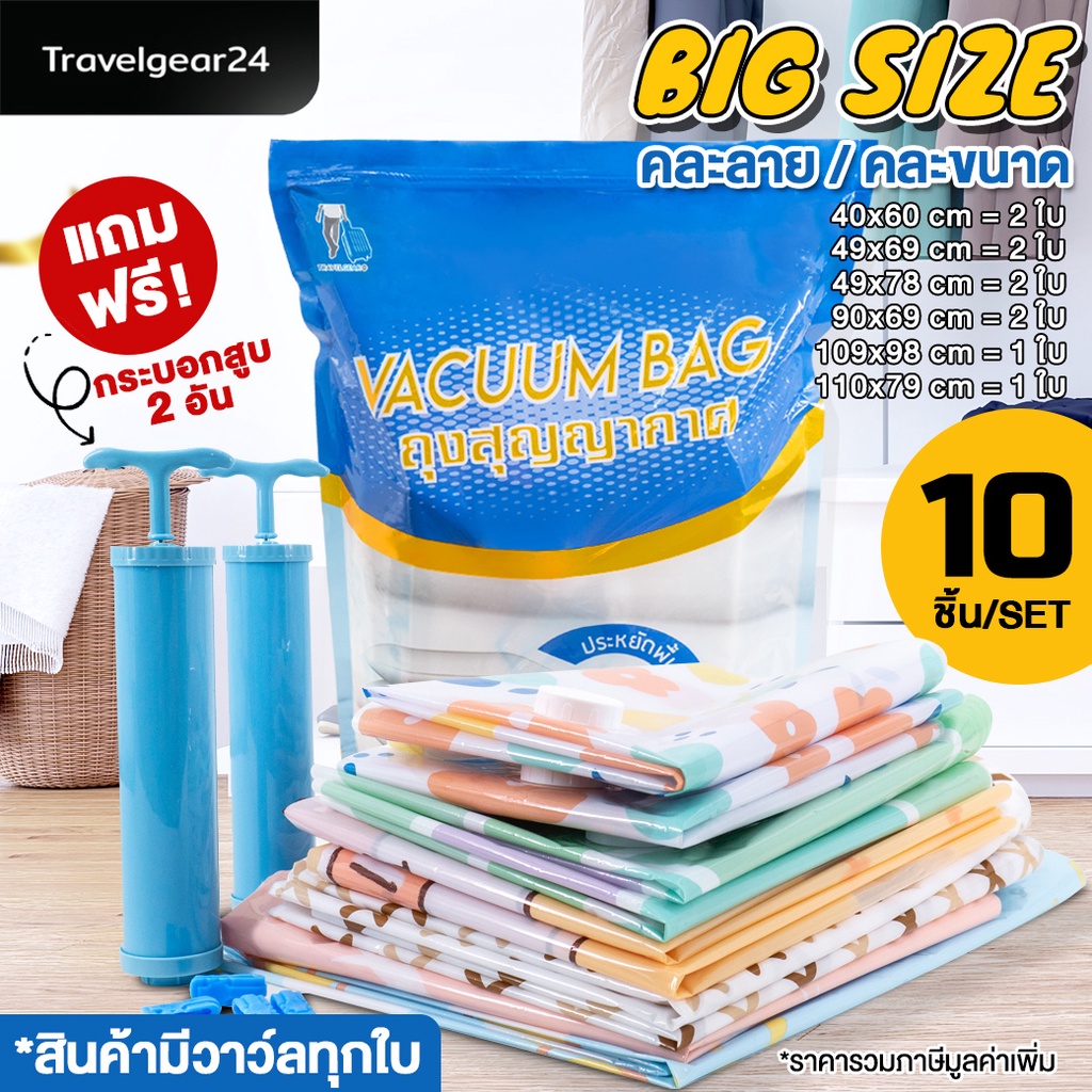 TravelGear24 ถุงสูญญากาศ ถุงใส่เสื้อผ้า คละลาย คละขนาด SET 5 / 10 / 12 / 15 / กระบอกสูบลม / กระบอกสูบไฟฟ้า - A0580