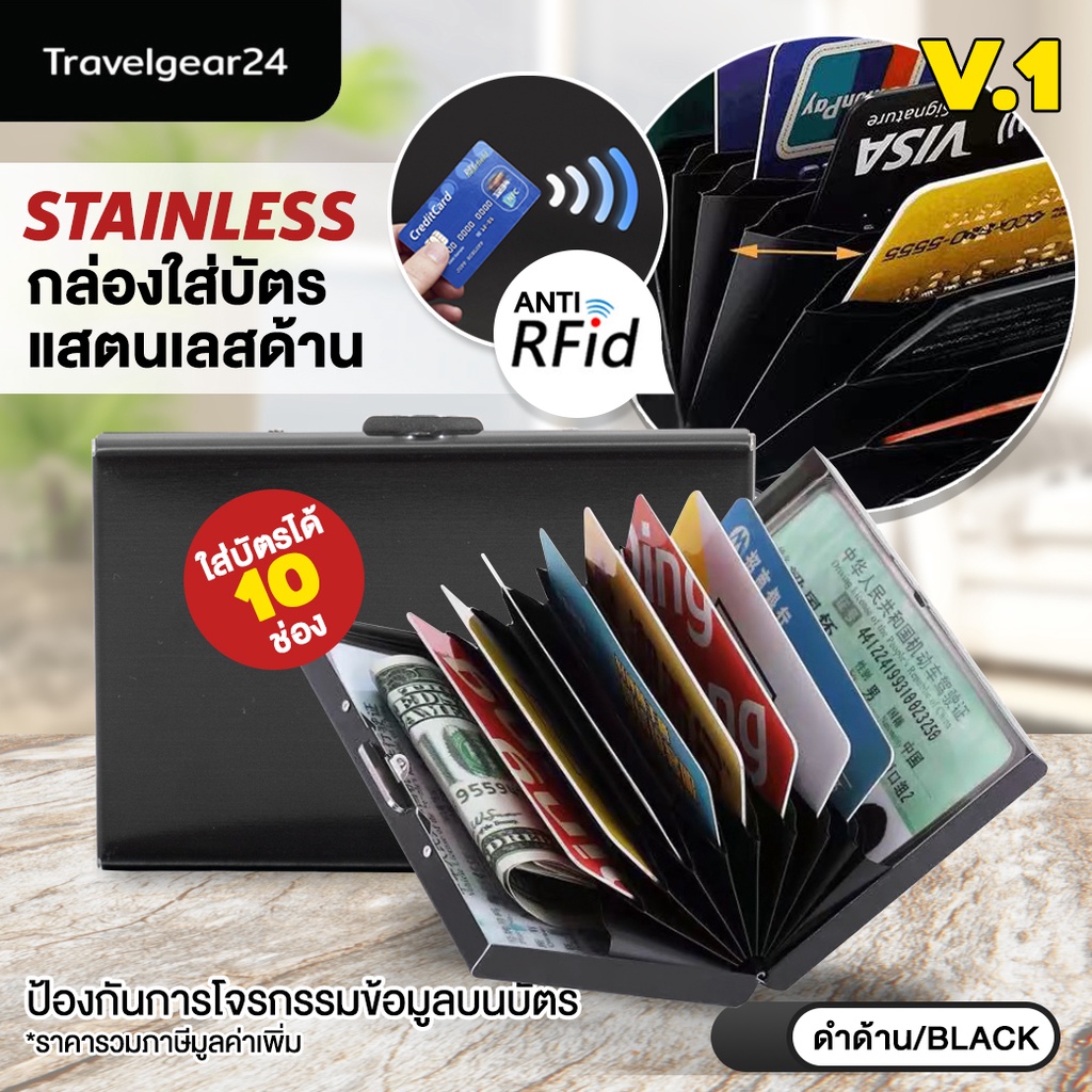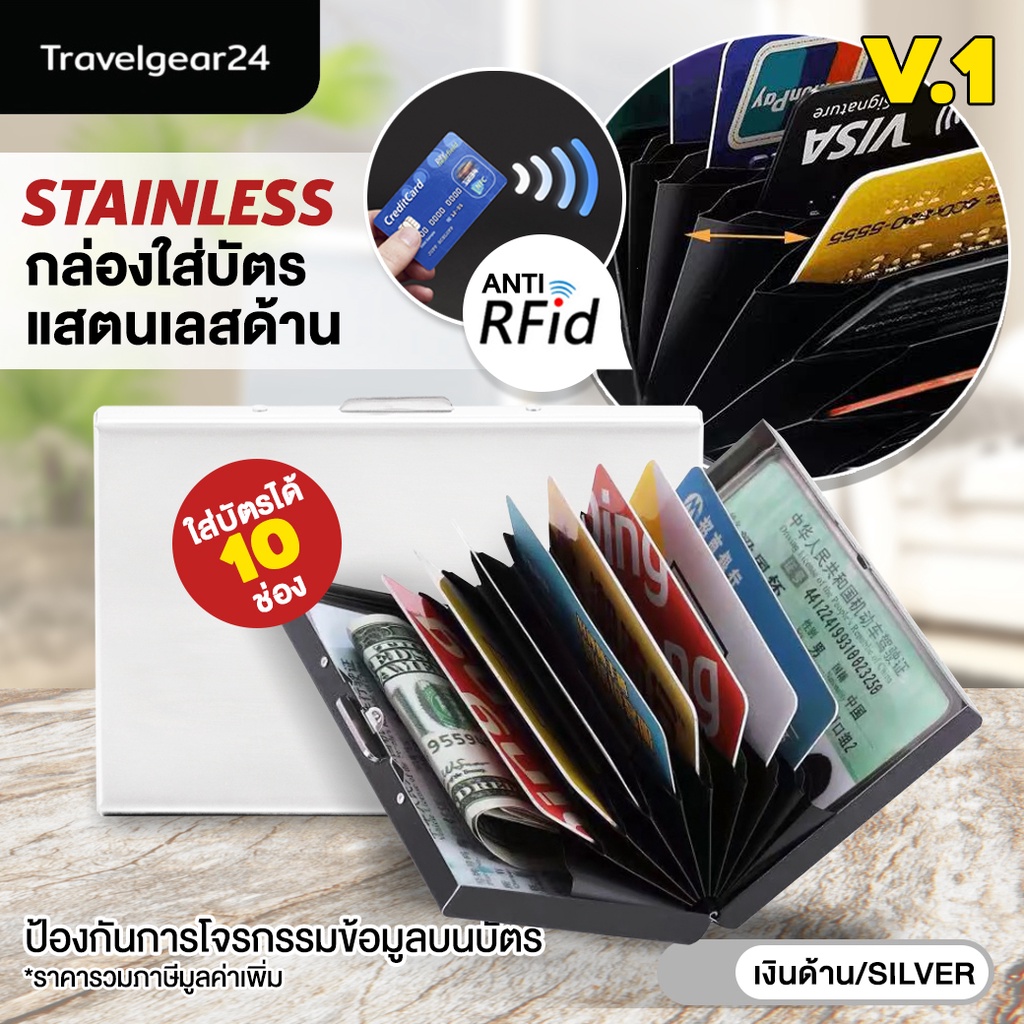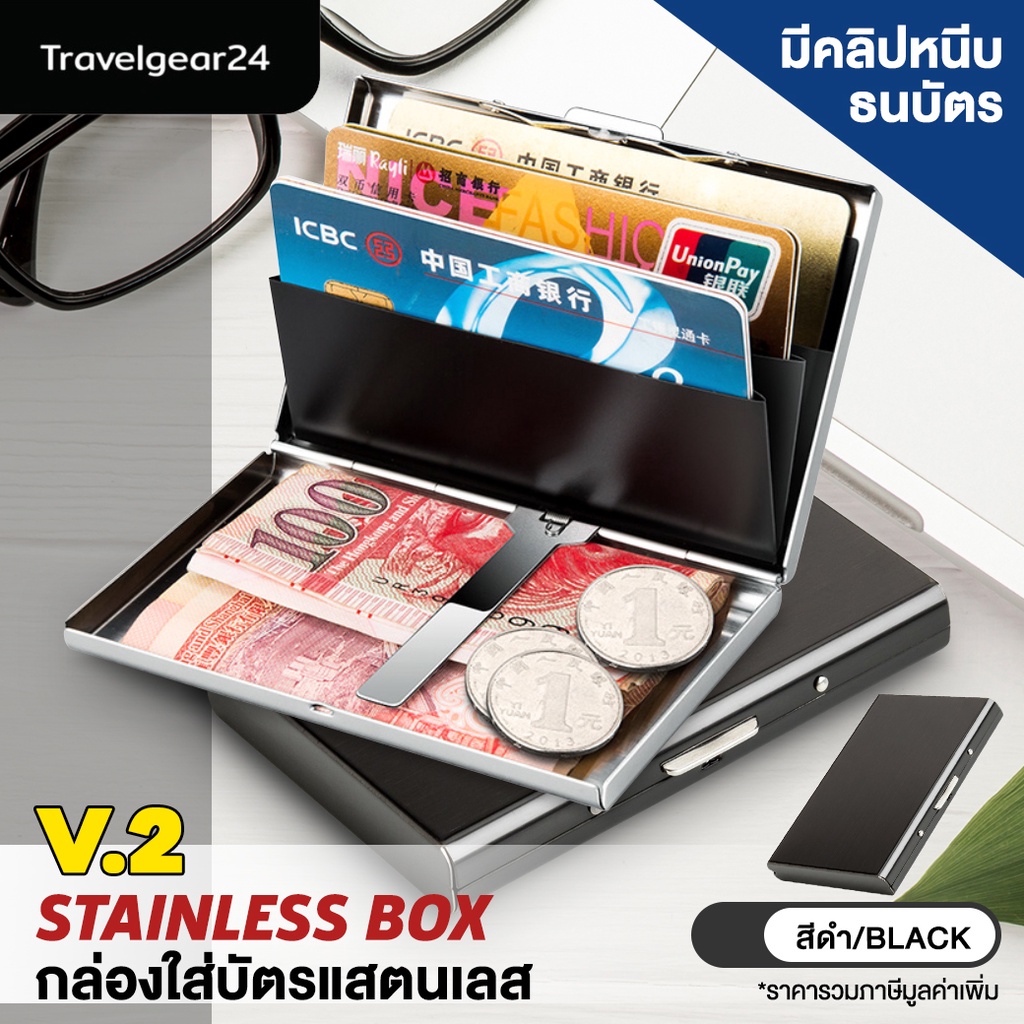 TravelGear24 กล่องใส่บัตรสแตนเลส กล่องใส่ธนบัตร ป้องกันการโจรกรรม - A0023 / A0028 - Card Holder RFID Money Clip Box