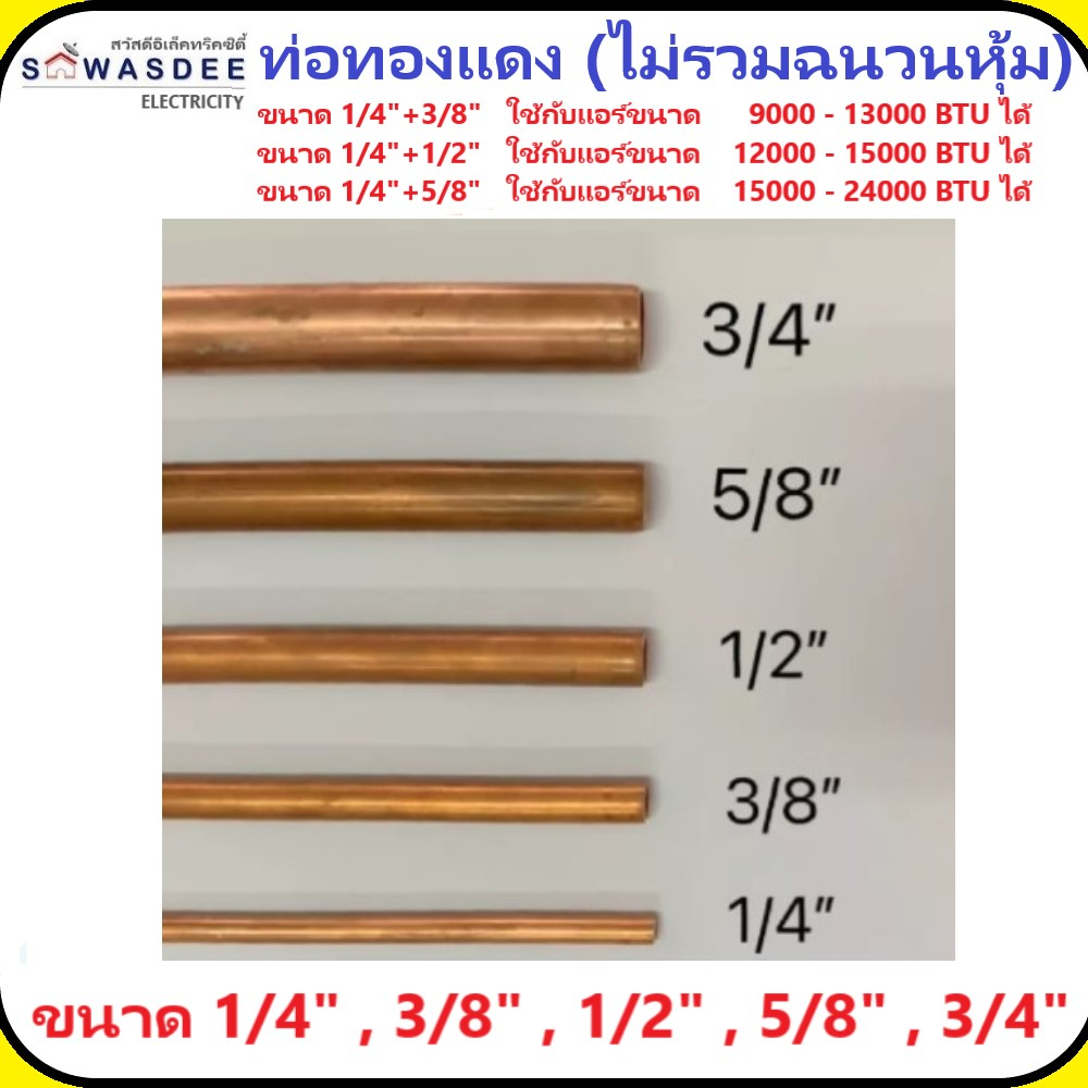 ท่อทองแดง(ไม่รวมฉนวนหุ้ม) ขนาด 1/4" 3/8" 1/2" 5/8" 3/4" ม้วนหนา #22 (ยาว 15 เมตร) ใช้กับแอร์ขนาด 9,000 - 24,000 BTU ได้