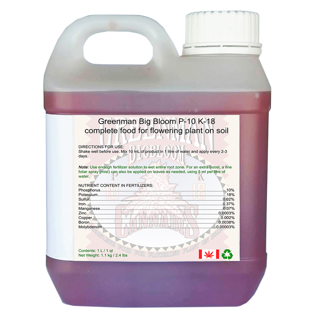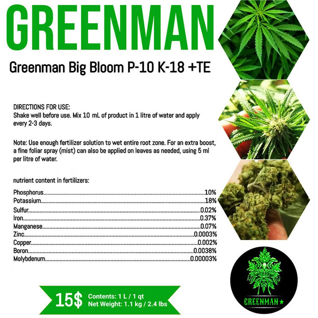 ปุ๋ยเร่งดอก Big Bloom P-10 K-18 +TE Greenman สูตรนำเข้าจากแคนาดาสูตรตัดNแถมฟรีCalMagXtraมูลค่า100บาท