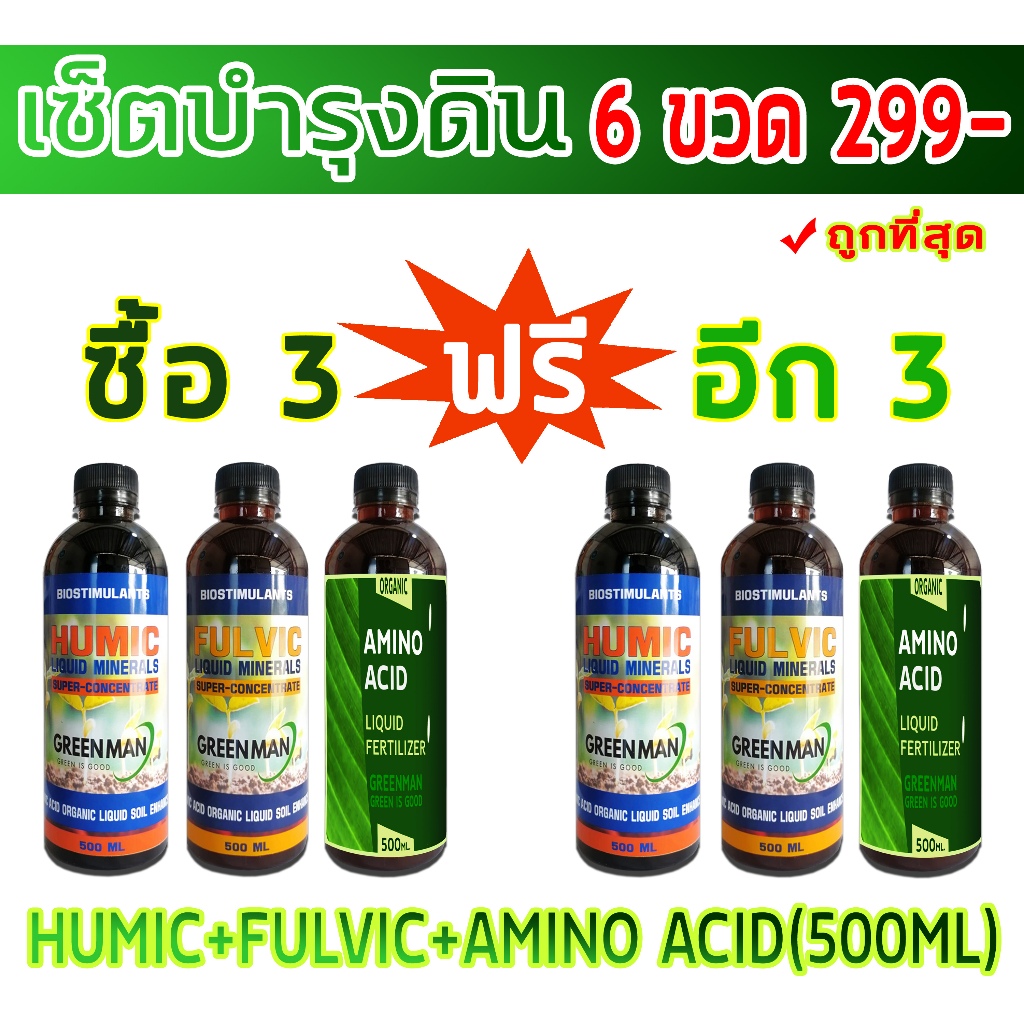 ซื้อ3แถม3 เซ็ตบำรุงดิน Humic acid Fulvic acid และ Amino acid ถูกที่สุด 500ml
