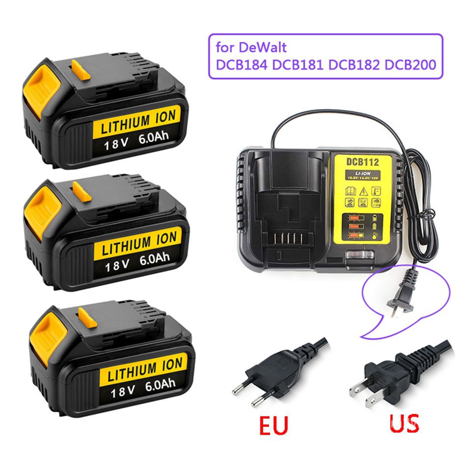 DeWalt 18V 6Ah MAX XR 18650 แบตเตอรี่เครื่องมือสำหรับ DeWalt DCB184 DCB181 DCB182 DCB200 20V 6A แบตเตอรี่ Ch