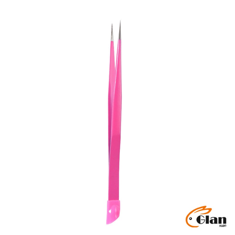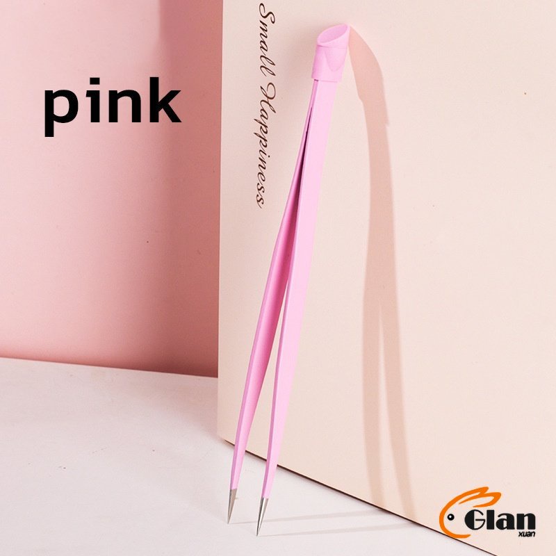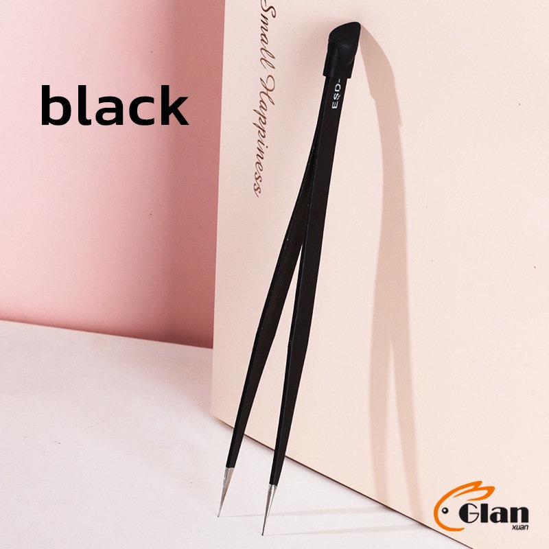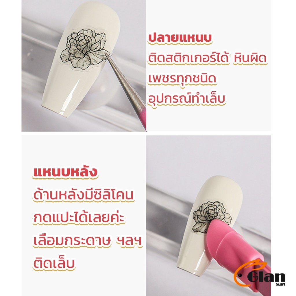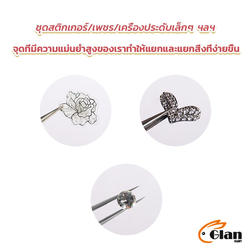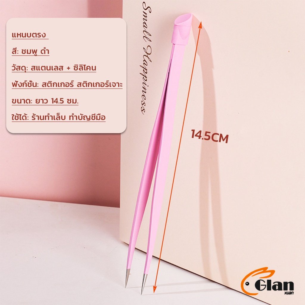 Glanxuan แหนบตรง พร้อมหัวกดซิลิโคน เลือกอัญมณี พลอยเทียม สําหรับตกแต่งเล็บ tweezers