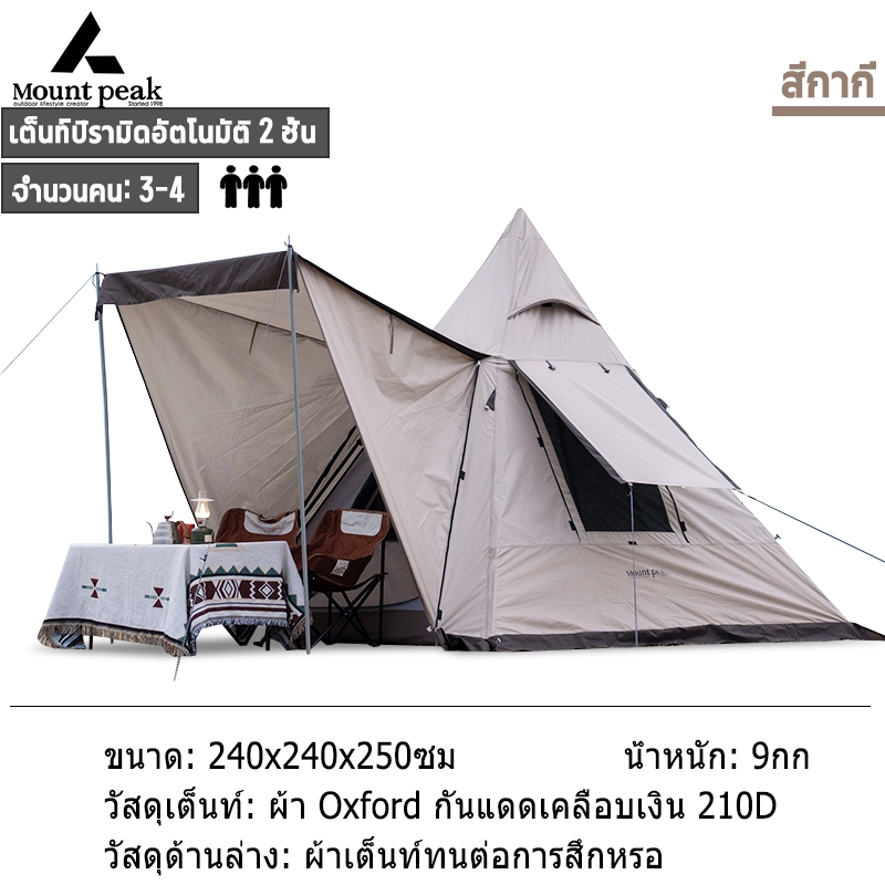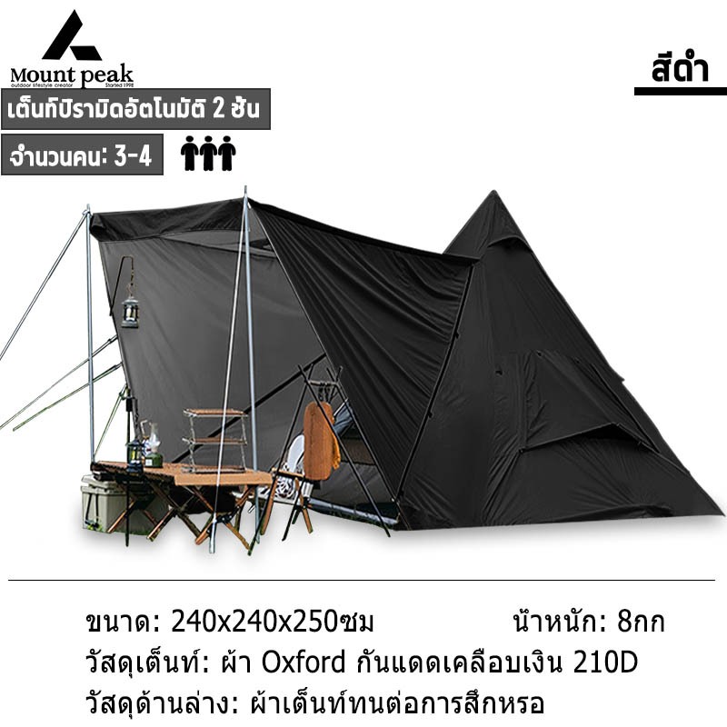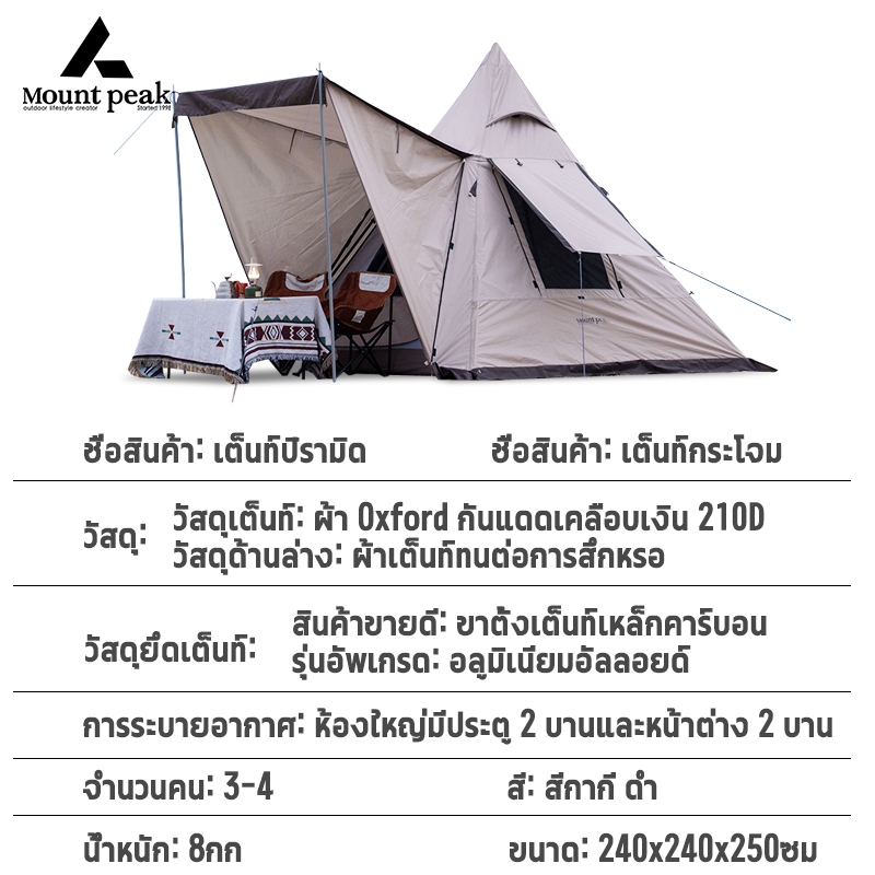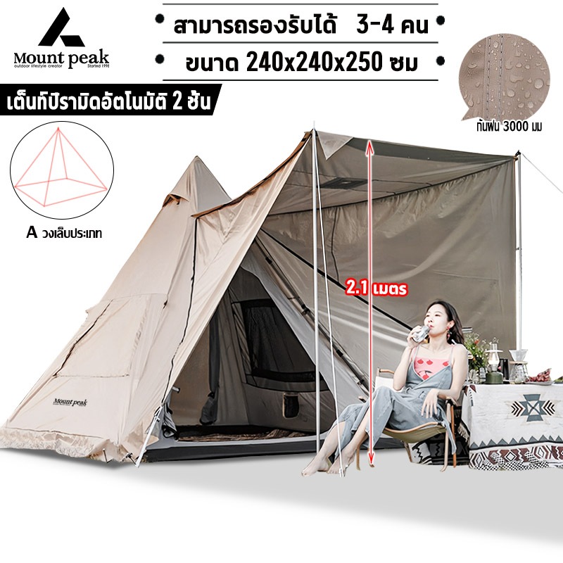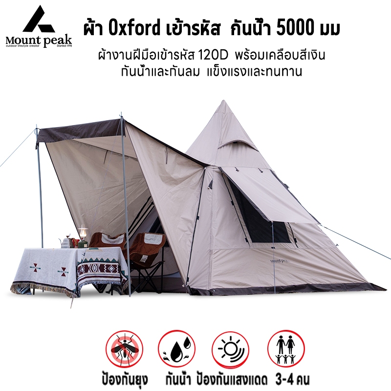 พร้อมส่ง⚡️เต้นท์แคมปิ้ง เต็นท์นอน Mountpeak Type A กระโจม ขนาด 3-4 คน กันฝน กันลม หลังคาด้านหน้า