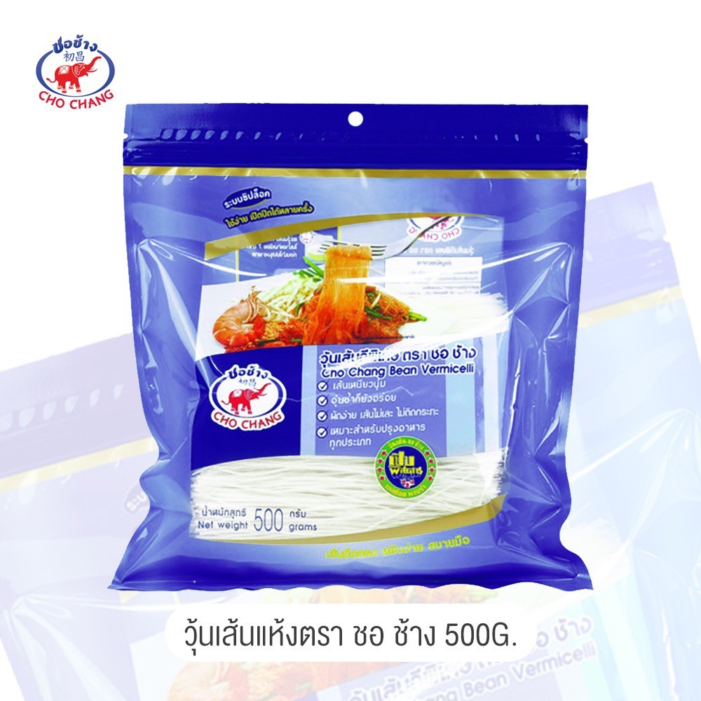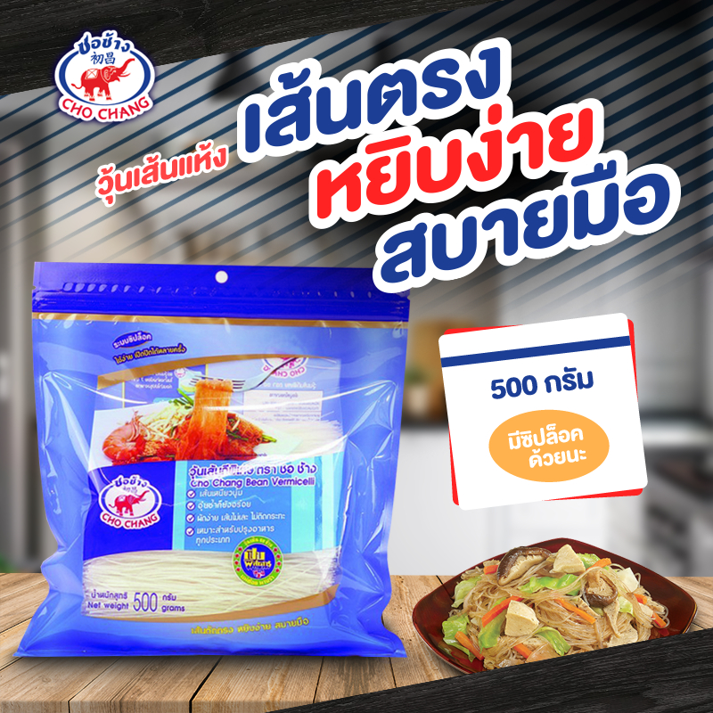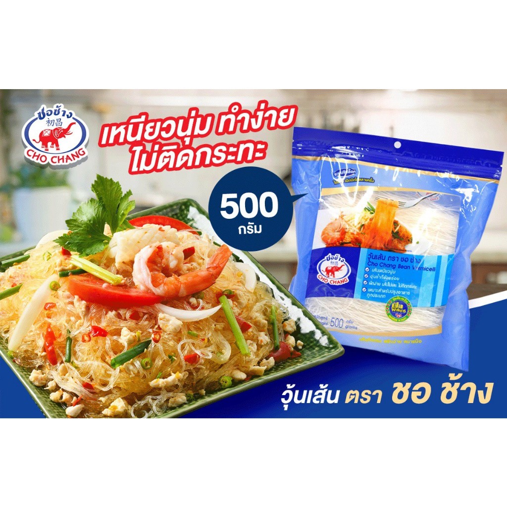 วุ้นเส้นเหนียวนุ่ม ตราชอช้าง ขนาด 500 กรัม 3 ซอง เส้นแห้งคุณภาพดี อุ่นซ้ำก็ยังอร่อย