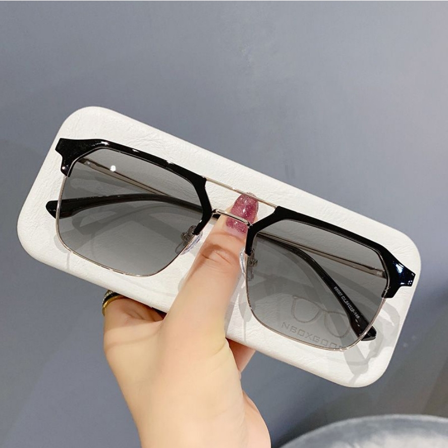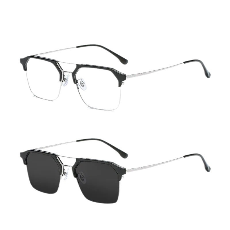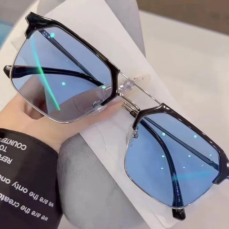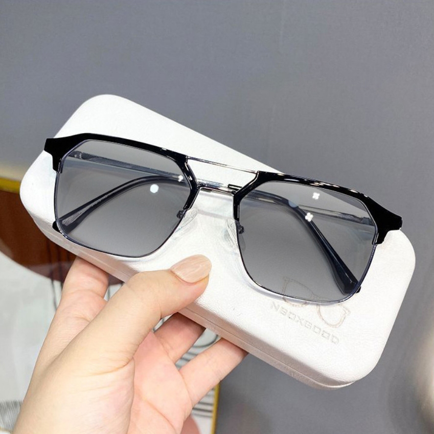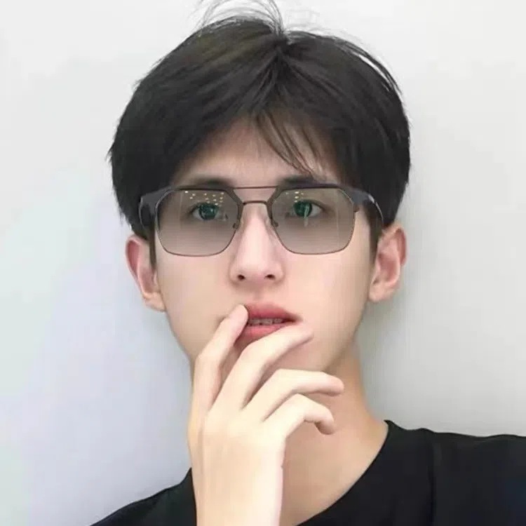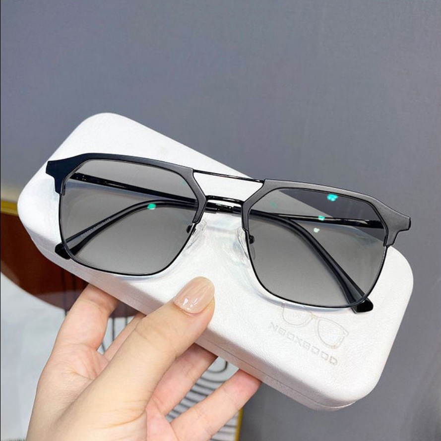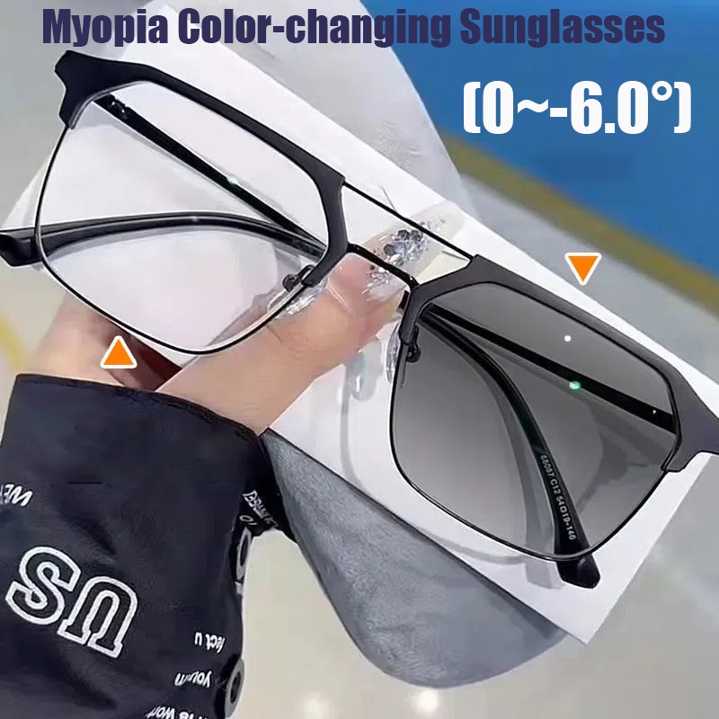 (0~-6.0°) แว่นตากันแดดสายตาสั้นกรอบใหญ่แฟชั่นผู้ชายป้องกันแสงสีฟ้าป้องกันรังสียูวีเปลี่ยนสีได้ ฮะ163