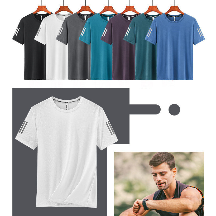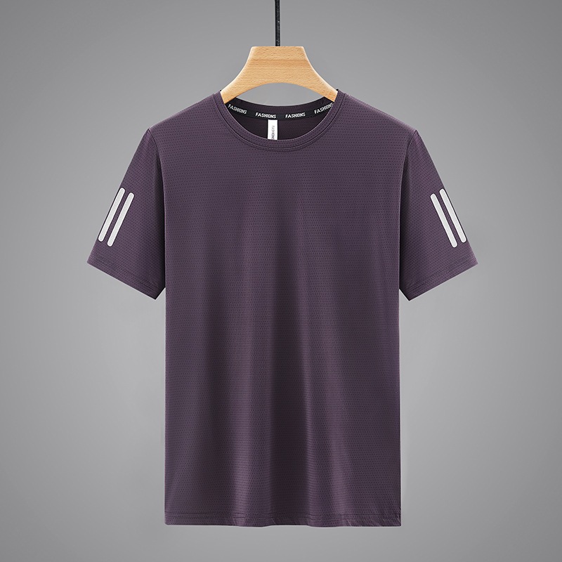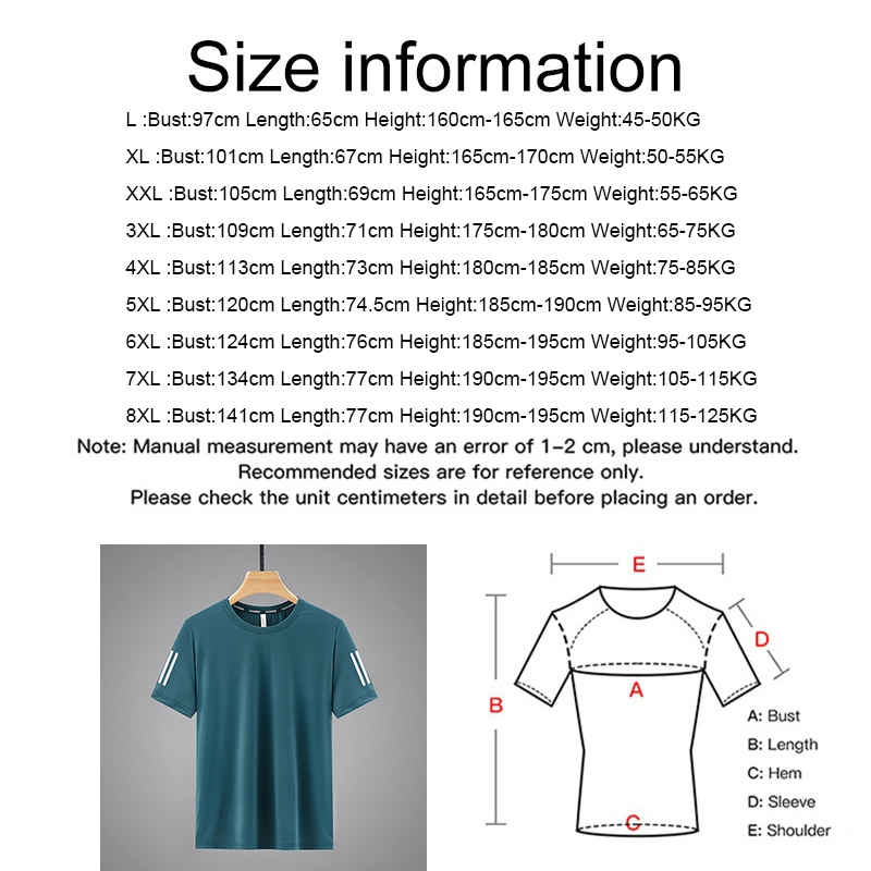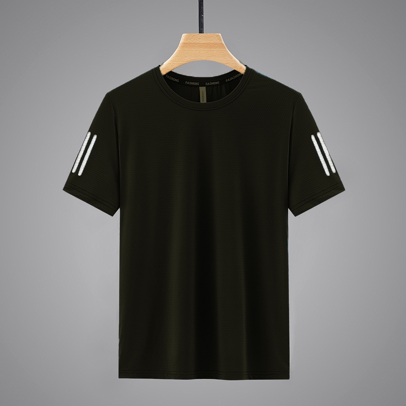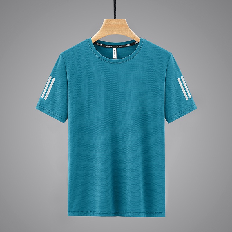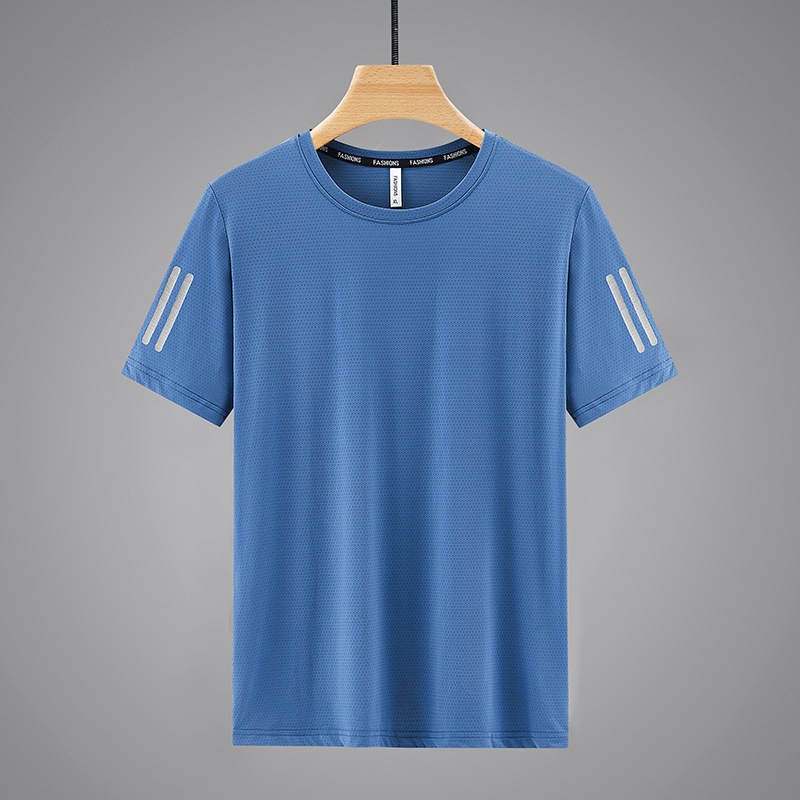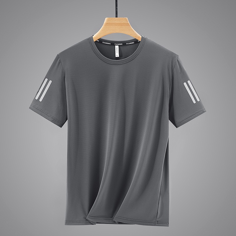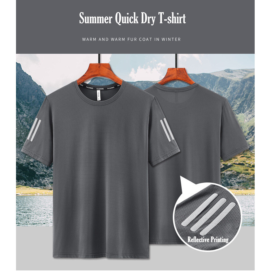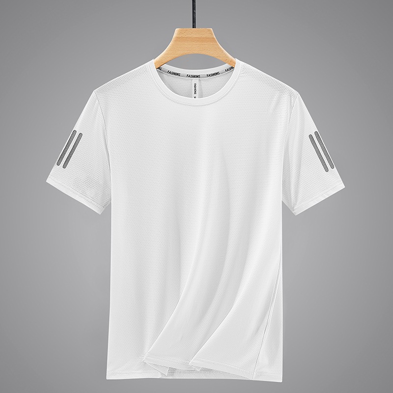 (45-125KG)Sporty Summer Mens T-Shirt With Ice Silk Cooling - Large Size Quick-Dry Round Neck