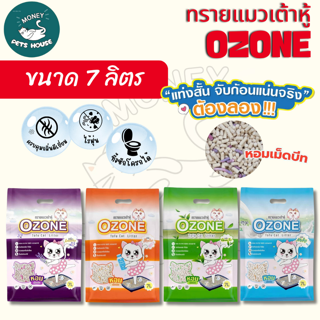 [ ขนาด 7 ลิตร ] ทรายแมวเต้าหู้ Ozone แท่งสั้นจับก้อนง่าย เก็บกลิ่นดี หอมสดชื่น เพิ่มเม็ดบีท ทิ้งชักโครกได้
