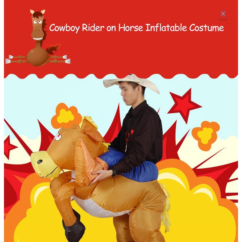 Decdeal ชุดแฟนซี คาวบอย ขี่ม้า แบบเป่าลม พร้อมพัดใช้แบตเตอรี่ สําหรับผู้ใหญ่ ปาร์ตี้ฮาโลวีน
