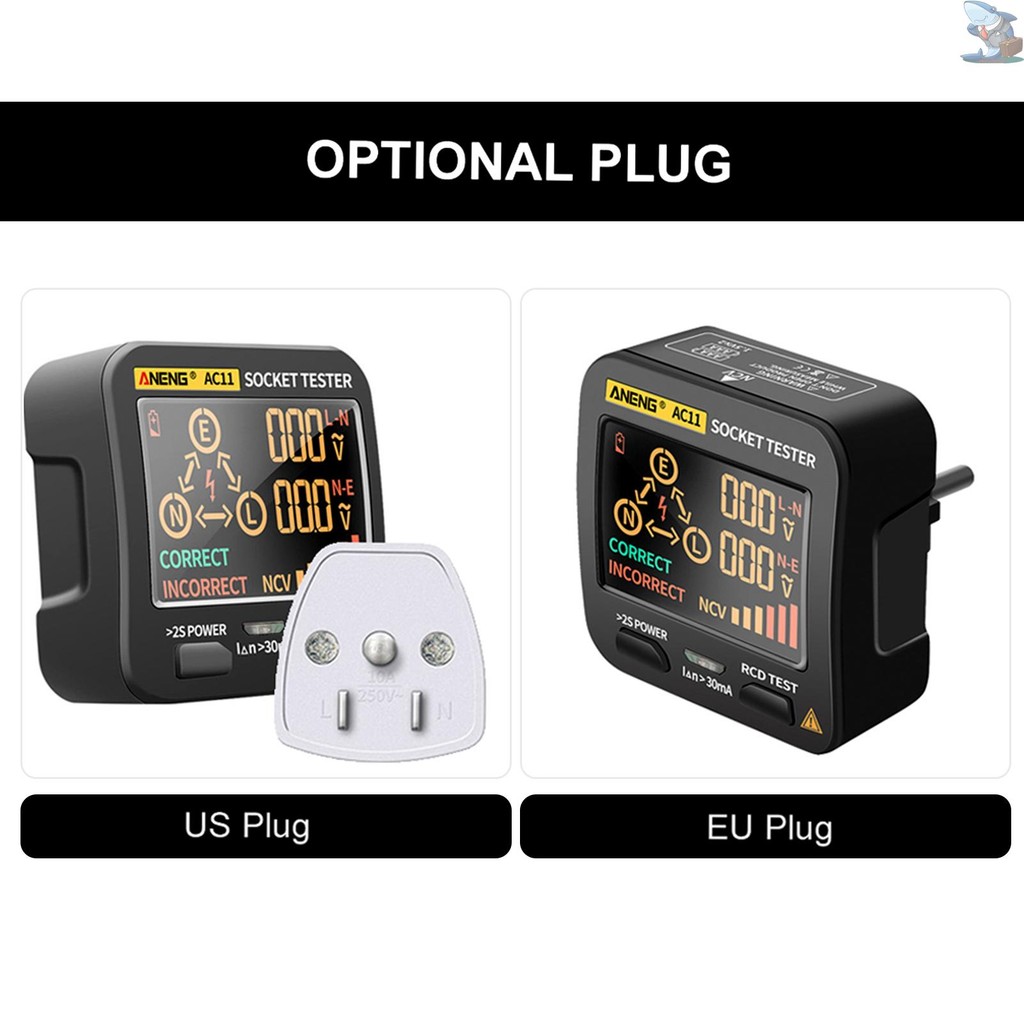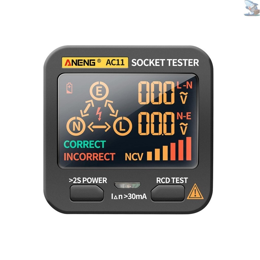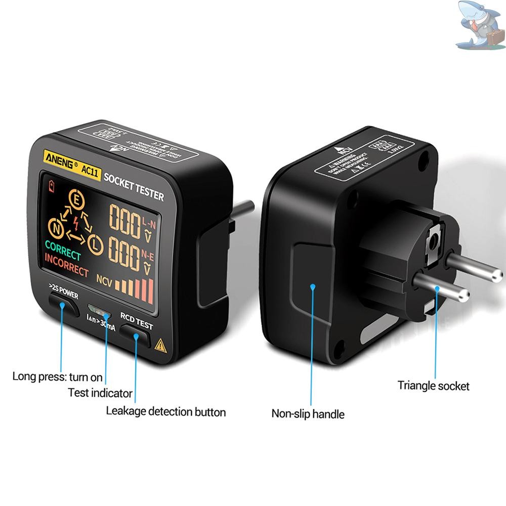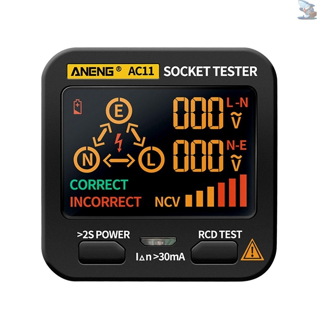 Aneng AC11 เครื่องทดสอบซ็อกเก็ตไฟฟ้า หน้าจอ LCD อเนกประสงค์ RCD NCV E TOP1219