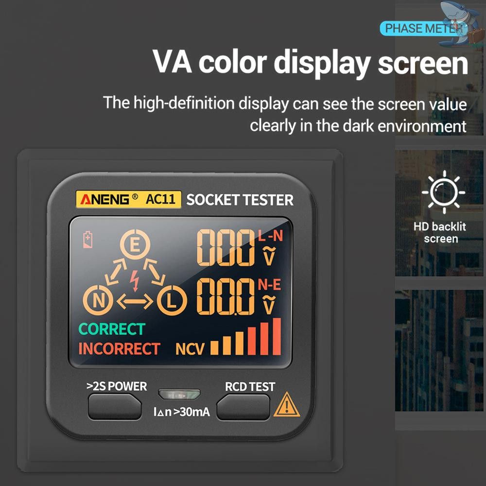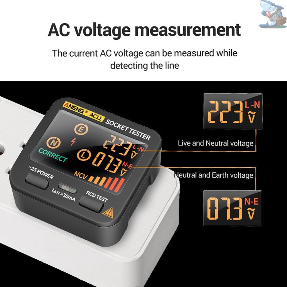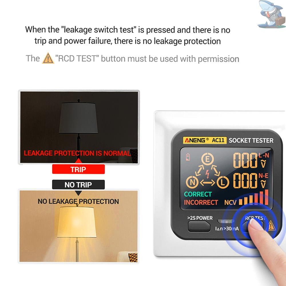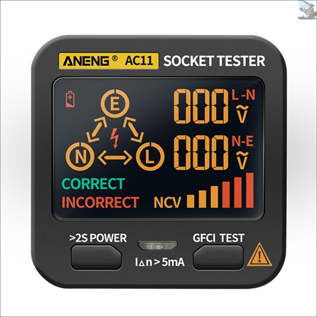 Aneng AC11 เครื่องทดสอบซ็อกเก็ตไฟฟ้า หน้าจอ LCD อเนกประสงค์ RCD NCV E TOP1219