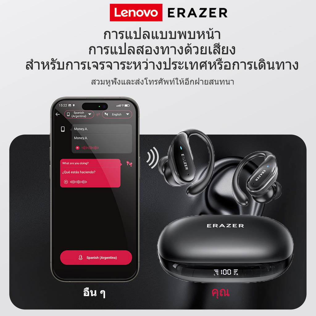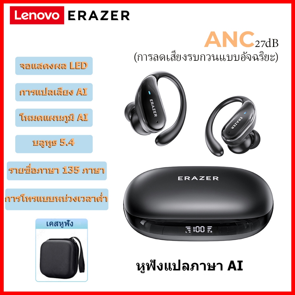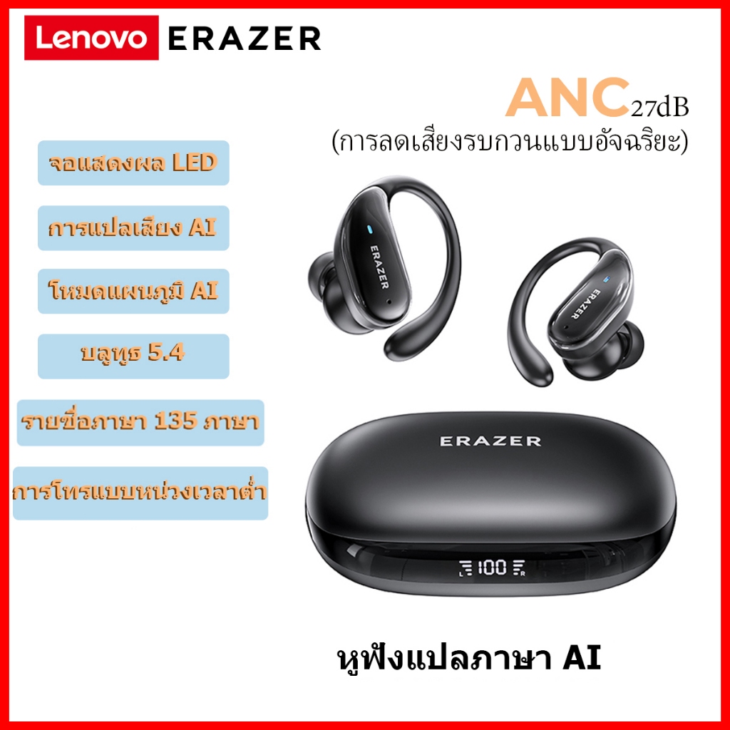 Lenovo ERAZER XT80 PRO หูฟังแปลภาษา AI translation หูฟังบลูทูธ หูฟังสำหรับเล่นกีฬา Bluetooth 5.4 หูฟัง เกี่ยว หู ไร้สาย หูฟังพร้อมไมโครโฟน หูฟังแบบใส่ในหู ระบบตัดเสียงรบกวน ระบบตัดเสียงรบกวน หูฟัง ASMR หูฟังสเตอริโอ หูฟังแบบ Hang-on