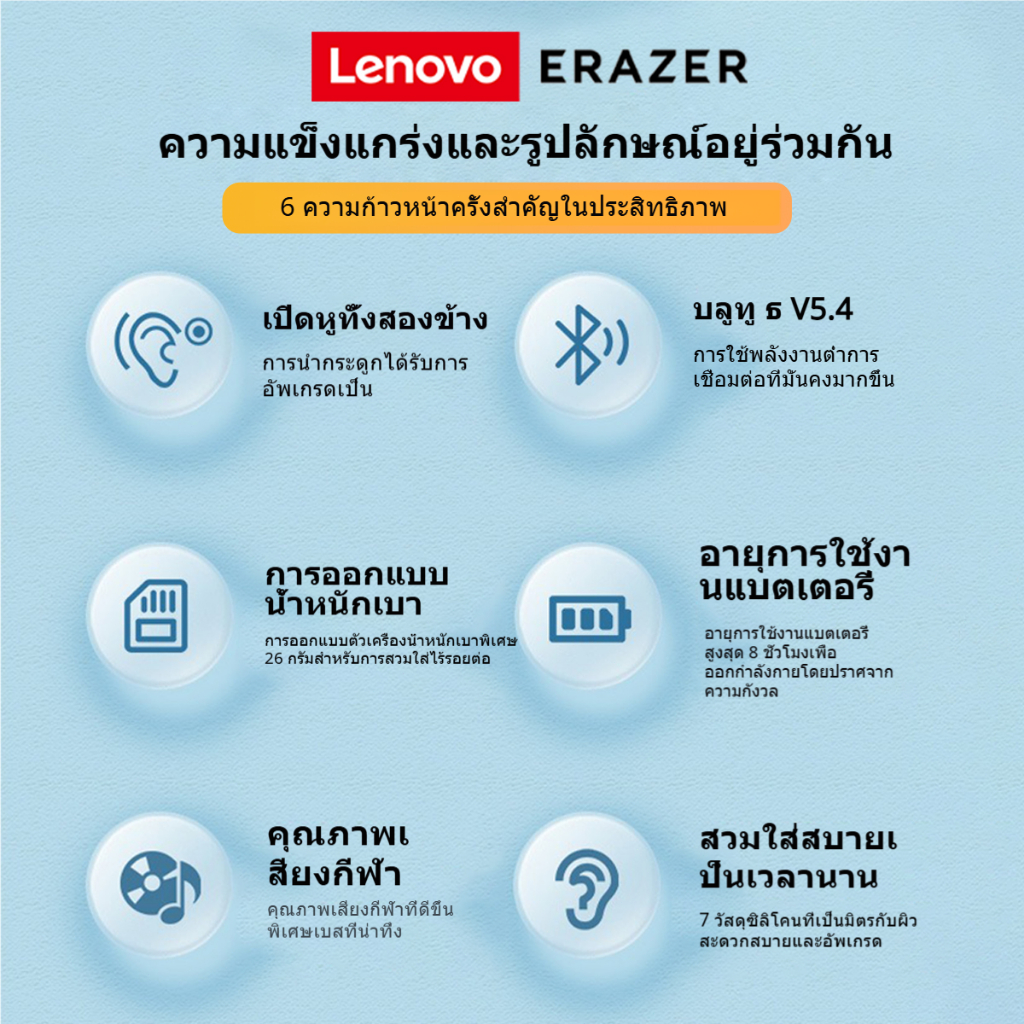 Lenovo XF22 หูฟังไร้สาย Bone Conduction แบบคล้องหู หูฟังกีฬา ระดับการกันน้ำ IPX5 บลูทูธ 5.4 หูฟังกีฬา Touch Control หูฟังสเตอริโอ HiFi หูฟังแบตอึด หูฟังกีฬากันน้ํา หูฟังไร้สาย Bluetooth earphone