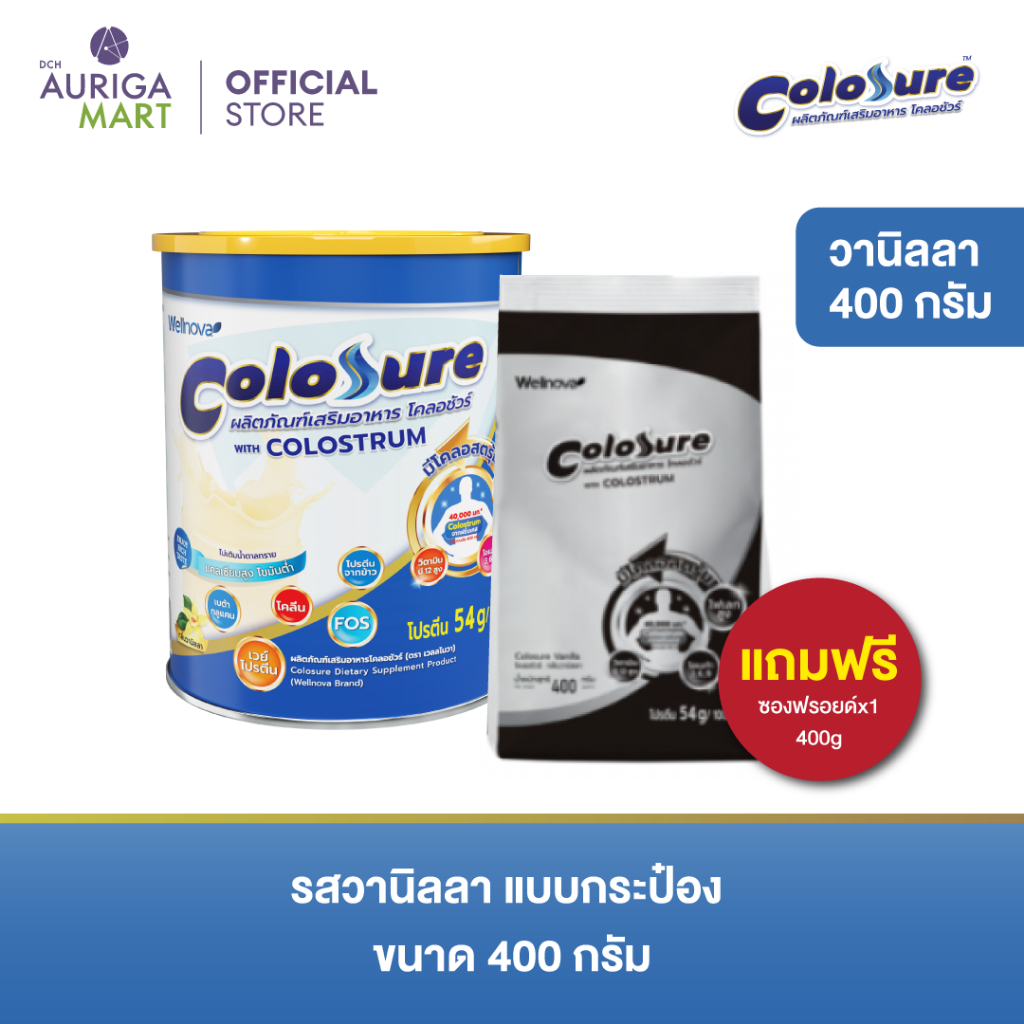 [1 แถม 1] Colosure โคลอชัวร์ ผลิตภัณฑ์เสริมอาหาร 400g x1 แถม รีฟิล 400g x1 ซอง มีโคลอสตรุ้ม ไขมันต่ำ ไม่เติมน้ำตาลทราย