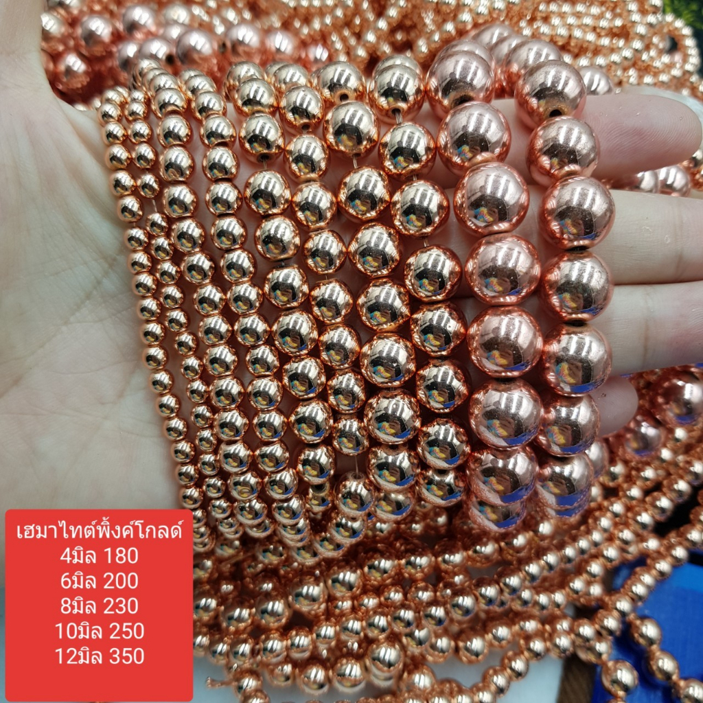 แร่เฮมาไทต์พิงค์โกลด์หินเส้นยาวขายส่งหินแท้คุณภาพความยาวประมาณ38--40cmสำหรับนำไปร้อยเองได้2วงข้อมือ