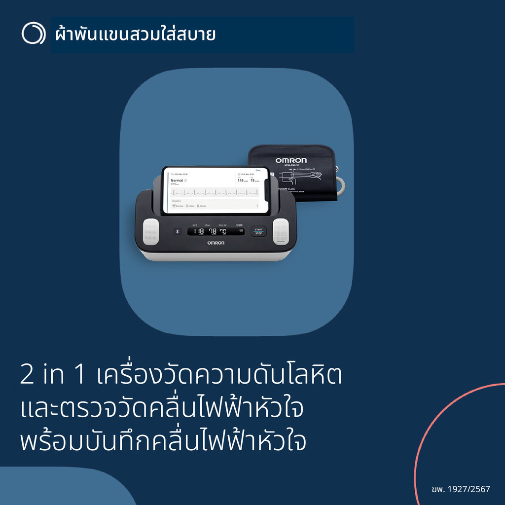 OMRON เครื่องวัดความดันโลหิตและบันทึกคลื่นไฟฟ้าหัวใจอัตโนมัติ รุ่น HEM-7530T (รับประกัน 3+3 ปี) Blood Pressure Monitor