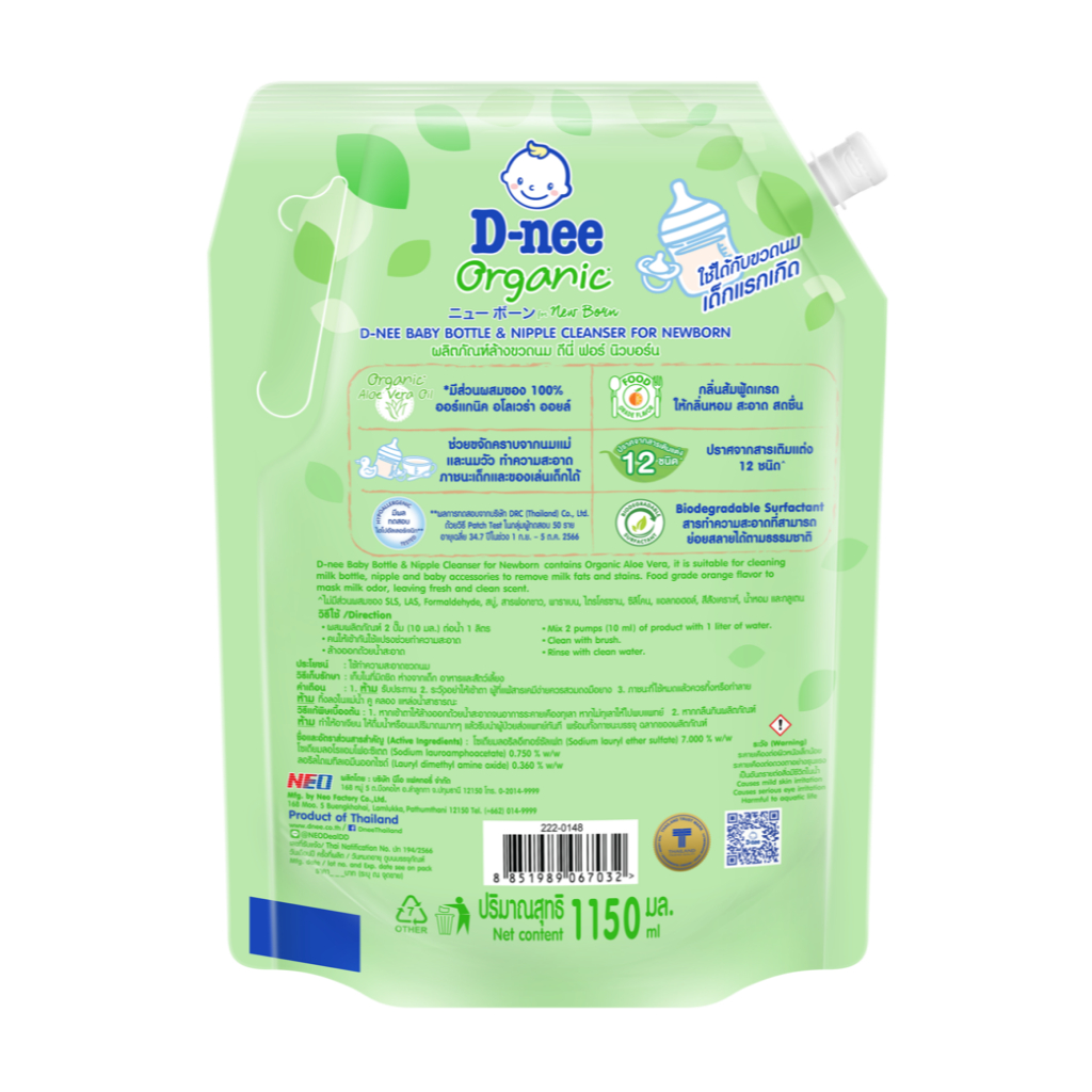 [แพ็ค 6] ผลิตภัณฑ์ล้างขวดนม ดีนี่ ฟอร์ นิวบอร์น 1150มล. (สีเขียว)