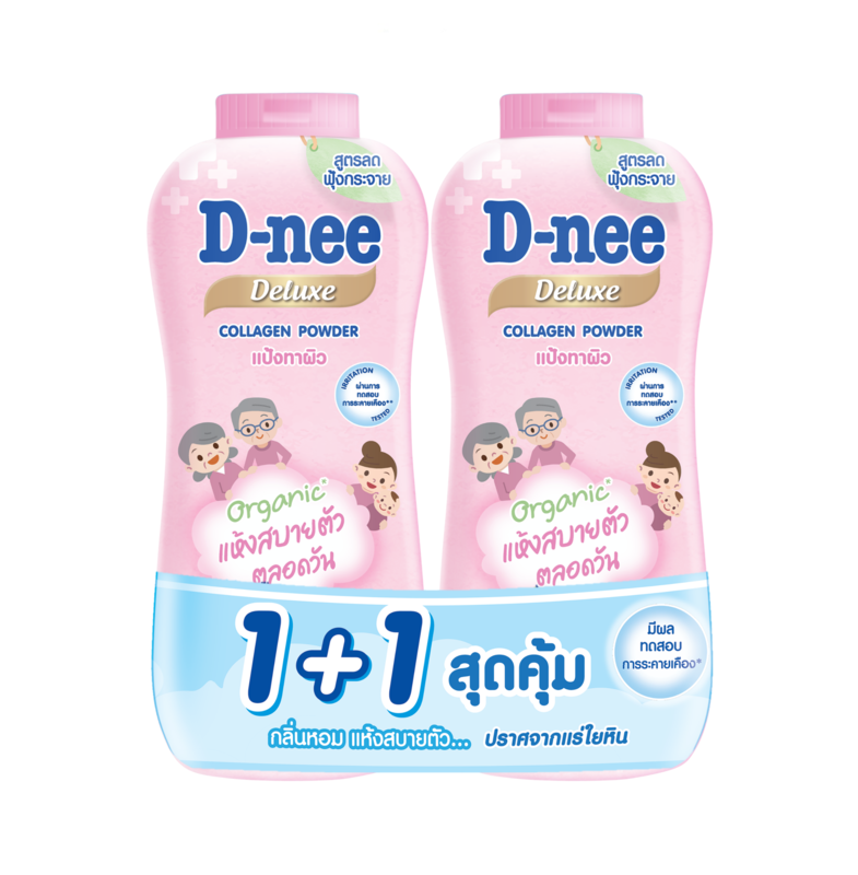 [แพ็คคู่] D-nee ดีนี่ แป้งทาผิว ดีลักซ์ คอลลาเจน พาวเดอร์ 280+280 กรัม., ลดกลิ่นตามวัย แห้งสบายตลอดวัน