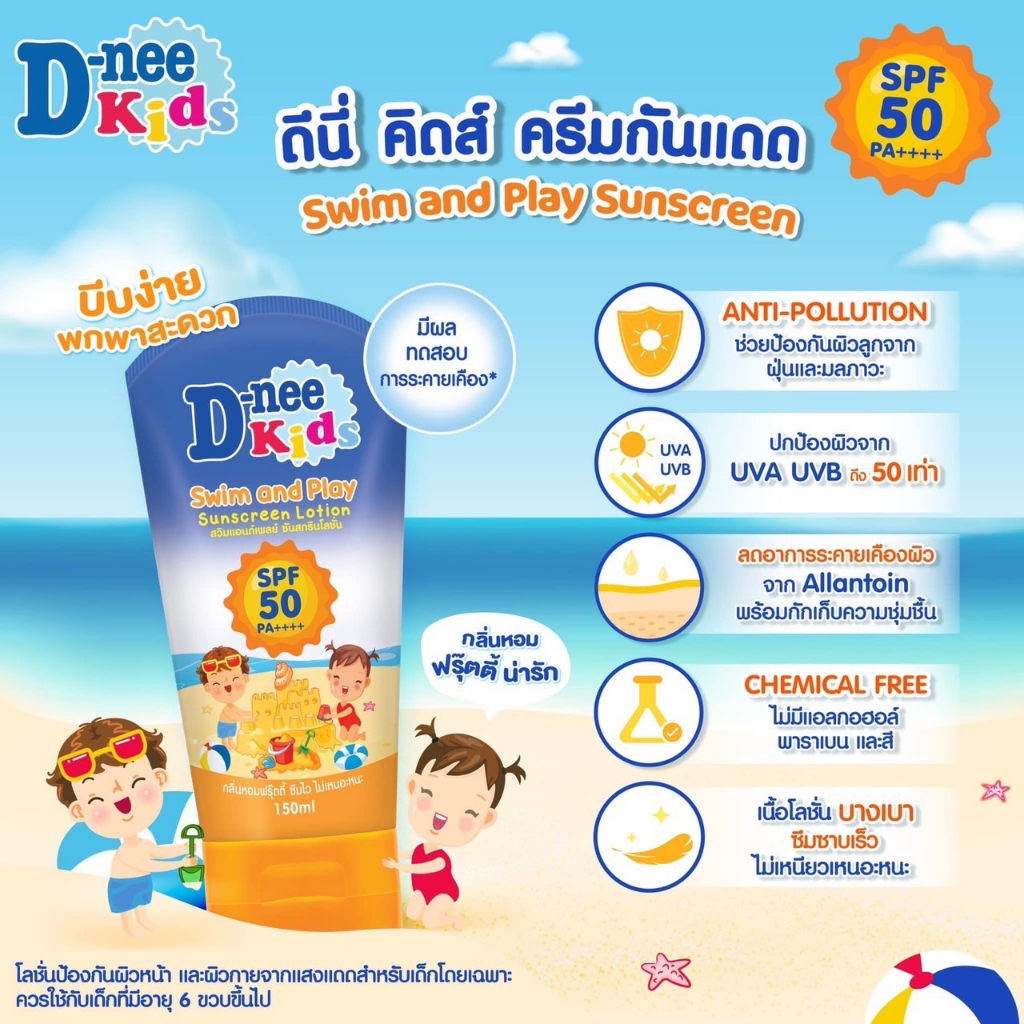 D-nee ดีนี่ คิดส์ สวิมแอนด์เพลย์ ซันสกรีนโลชั่น SPF 50 150 มล. x1
