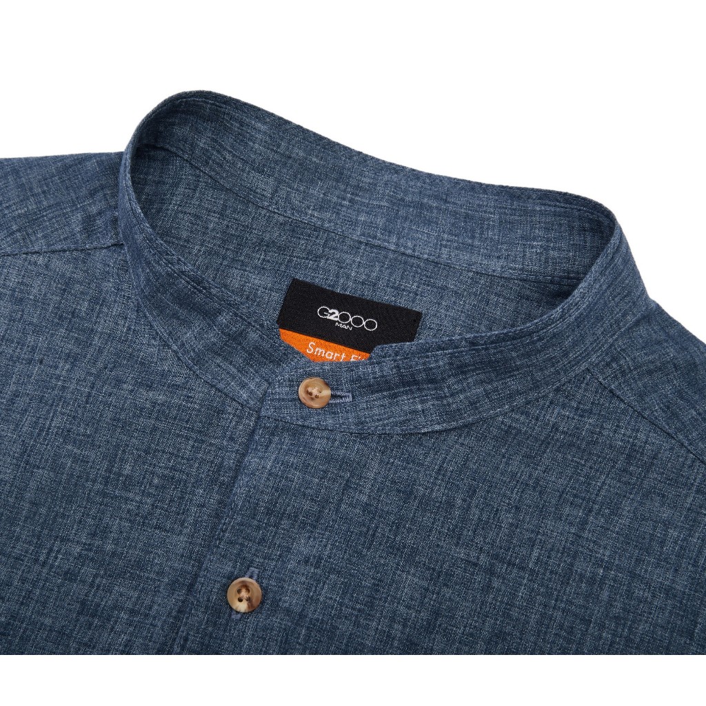 เสื้อเชิ๊ต G2000 แขนสั้น สีน้ำเงินลินิน รุ่น 46 13992278 กระดุมสีไม้