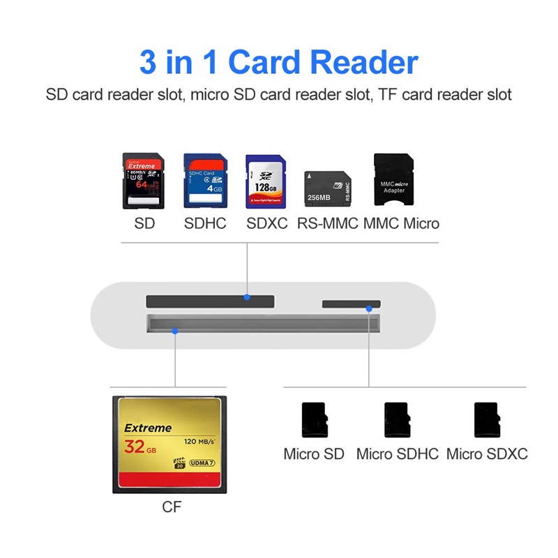 3 in 1 Type-C/iOS ถึง CF/TF/SD Card Reader USB C iOS 18 17 16 15 14 13 OTG กล้องอะแดปเตอร์สําหรับ Compact Flash Memory Card Converter สําหรับ Xiaomi Samsung