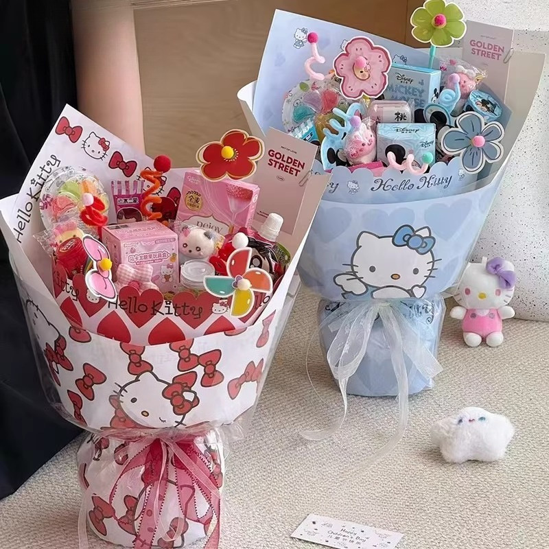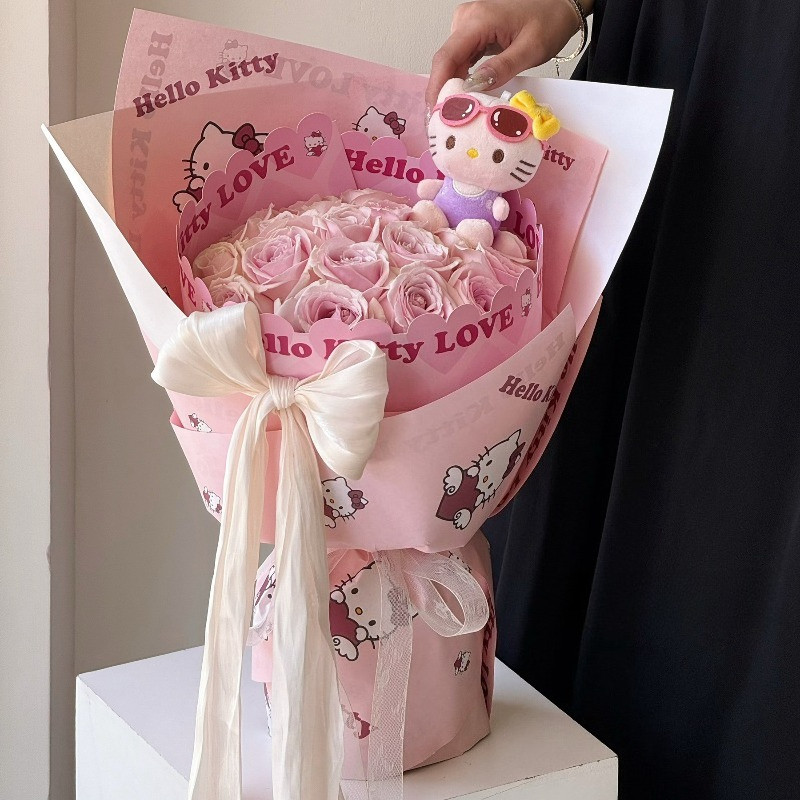 กระดาษห่อช่อดอกไม้ Hello Kitty ตกแต่งของขวัญ ปาร์ตี้ฟลอริส อุปกรณ์วันวาเลนไทน์