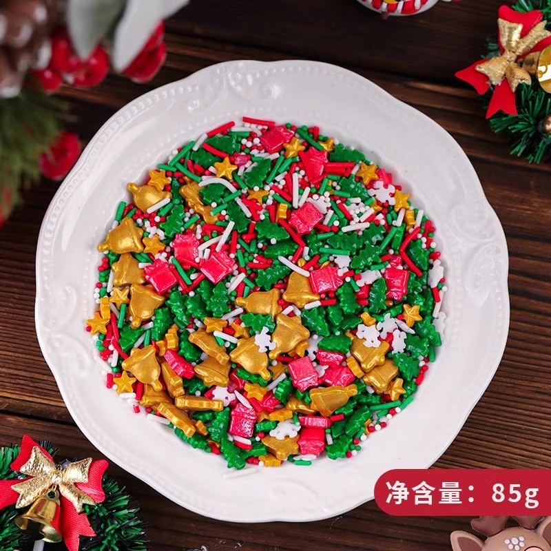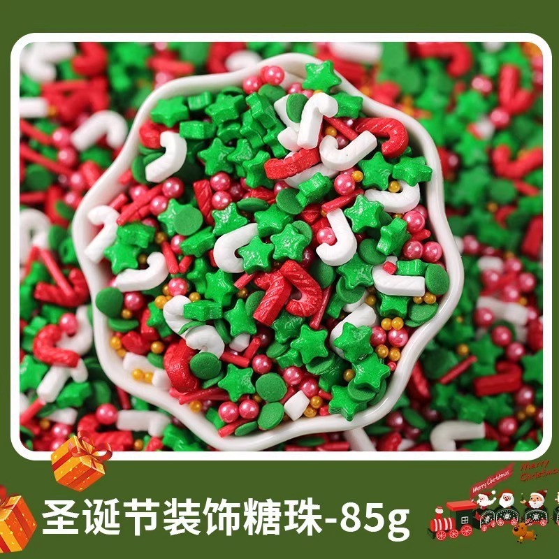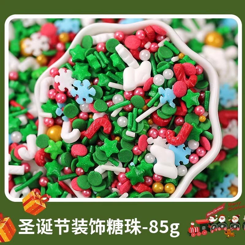 85/100กรัมคริสต์มาสเบเกอรี่เค้กตกแต่งเอดดัลไวส์น้ําตาลไข่มุกเข็มน้ําตาลเกล็ดหิมะการ์นิชผสมซานตาโต๊ะขนม