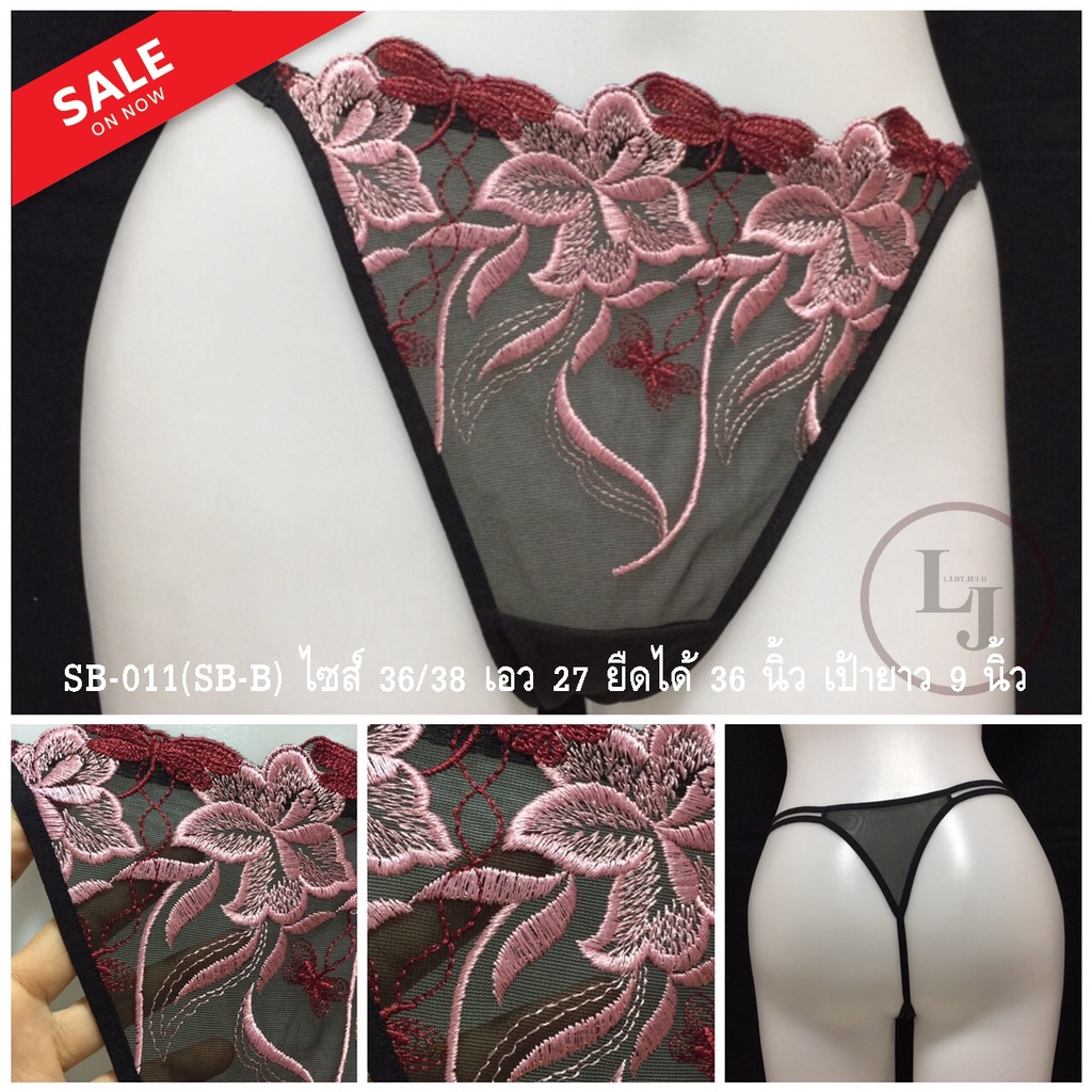 SB-011(SB-B)จีสตริงสายเดี่ยวแบบคู่,สีดำผ้าซีทรูบางมีลายปักรูปดอกไม้,ไซส์36/38เอว27ยืดได้36นิ้ว,เป้ายาว9นิ้ว,ผ้าไม่ยืด