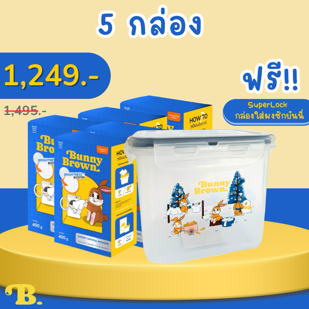 BUNNY BROWN ผงซักผ้าขาว แพ็ค5 แถมช้อนตัก
