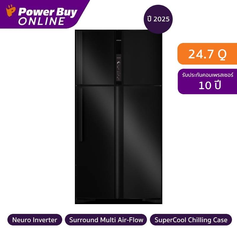 HITACHI ตู้เย็น 2 ประตู 24.7 คิว Inverter (สีดำเงา) รุ่น R-V700PA-1 U