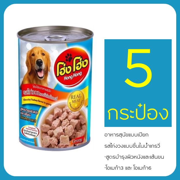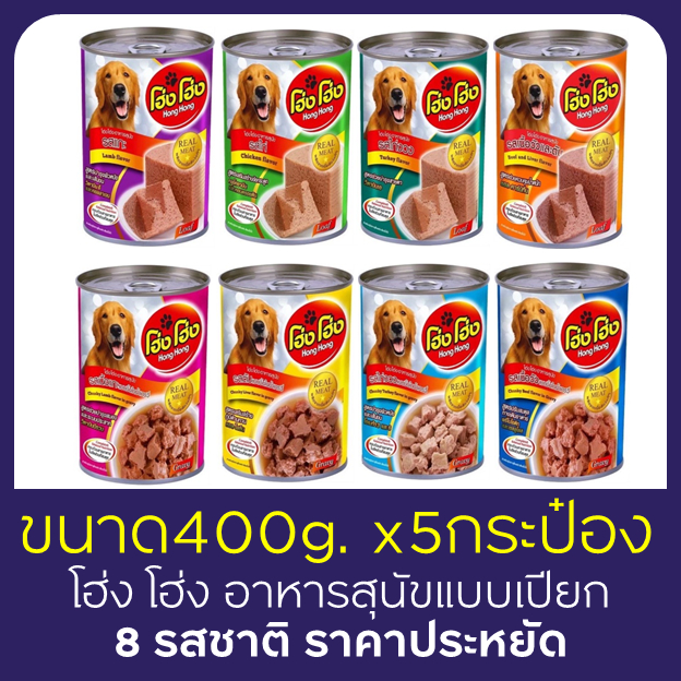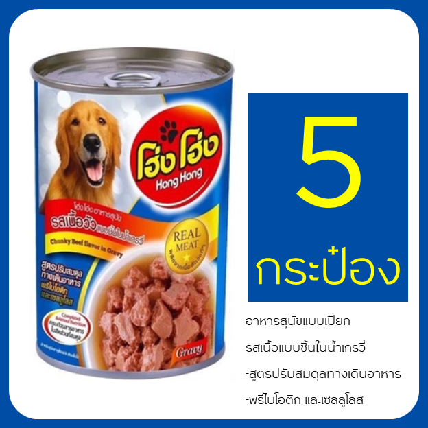 เข้าใหม่ ไม่ค้างสต๊อค อาหารสุนัขแบบเปียก 5ป๋องโฮ่ง โฮ่ง กระป๋อง
