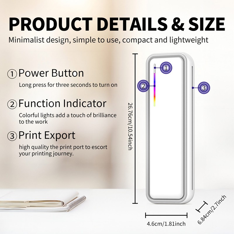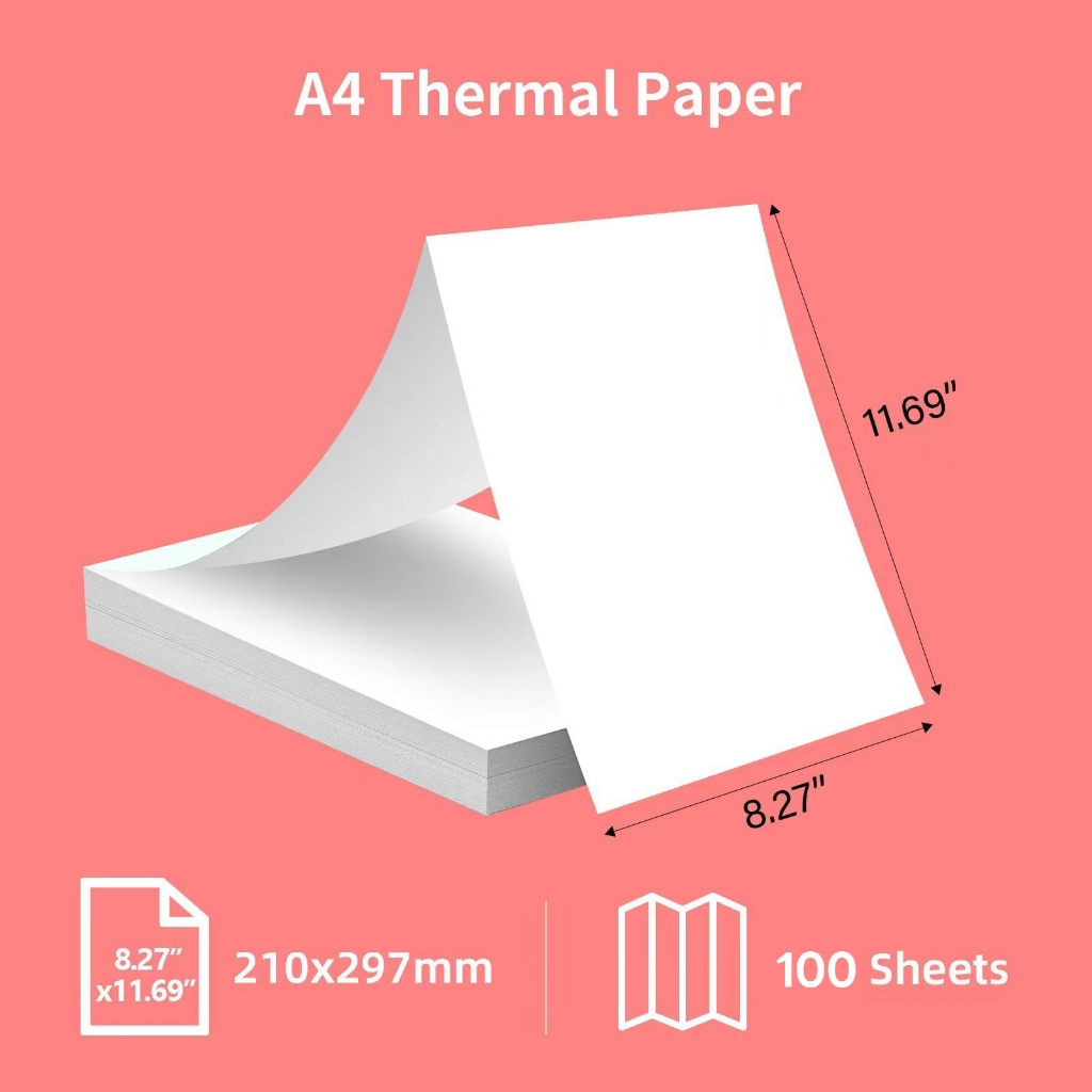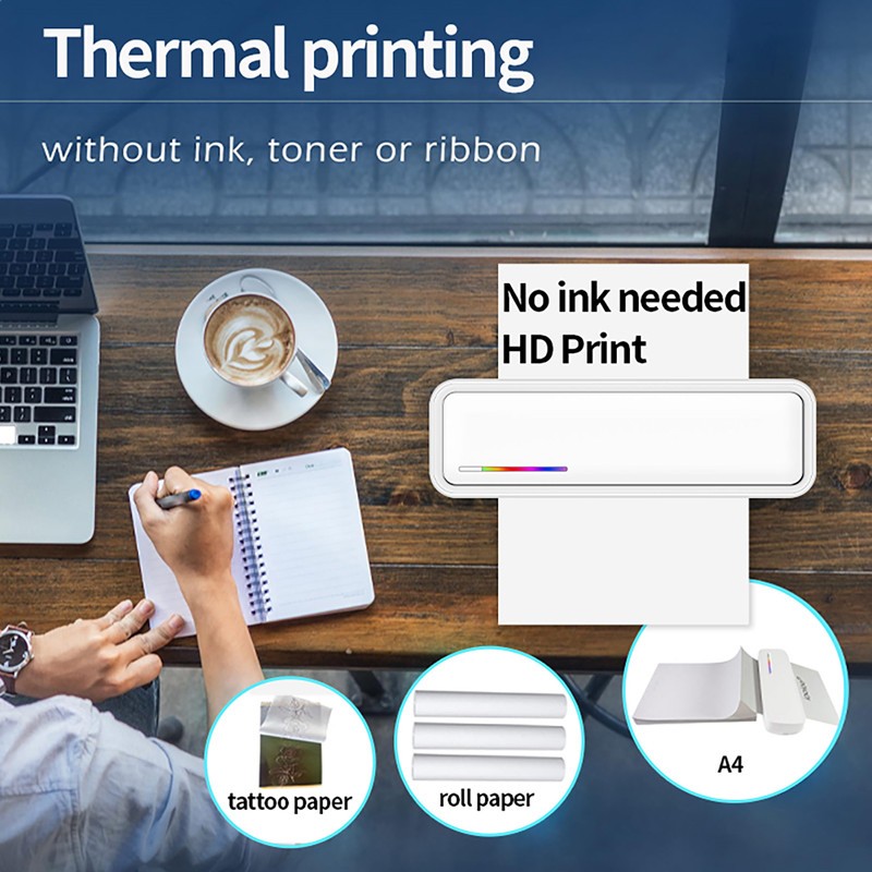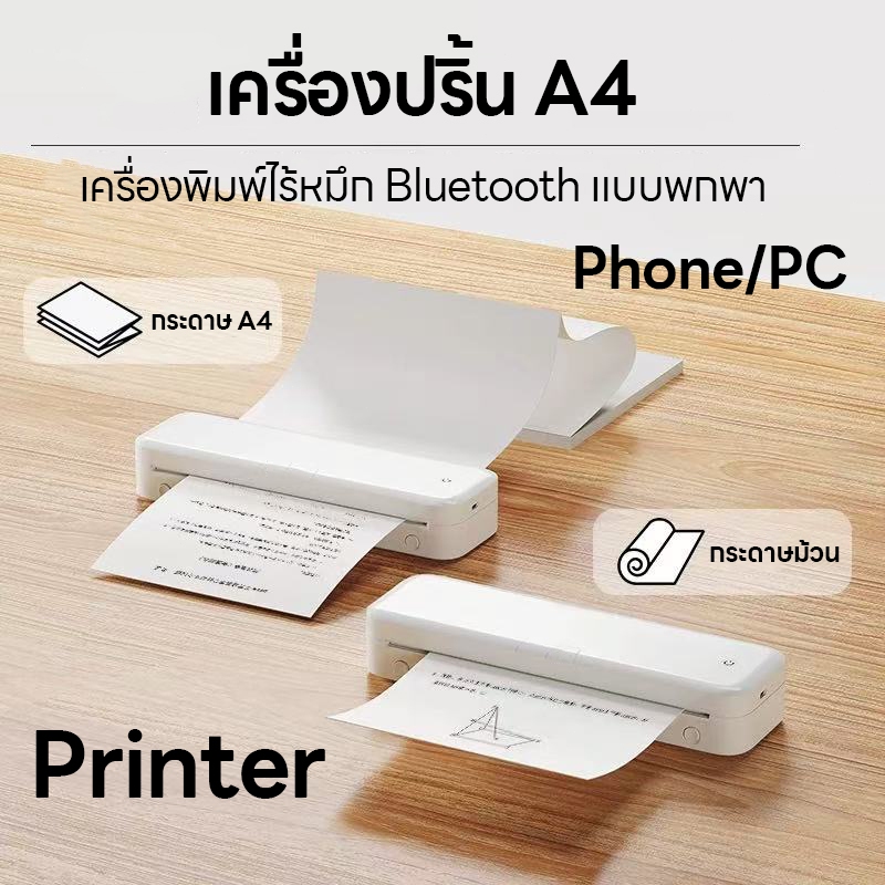 【รับประกัน 1ปี】เครื่องปริ้น A4 เครื่องพิมพ์ไร้หมึก Bluetooth แบบพกพา Printer Phone/PC กระดาษสัก/กระดาษม้วน/กระดาษ A4