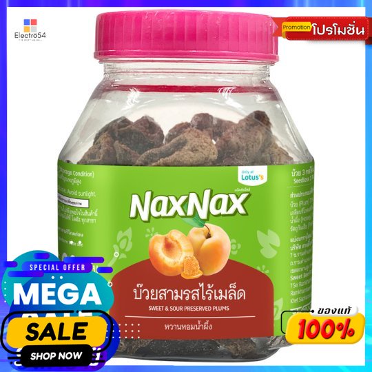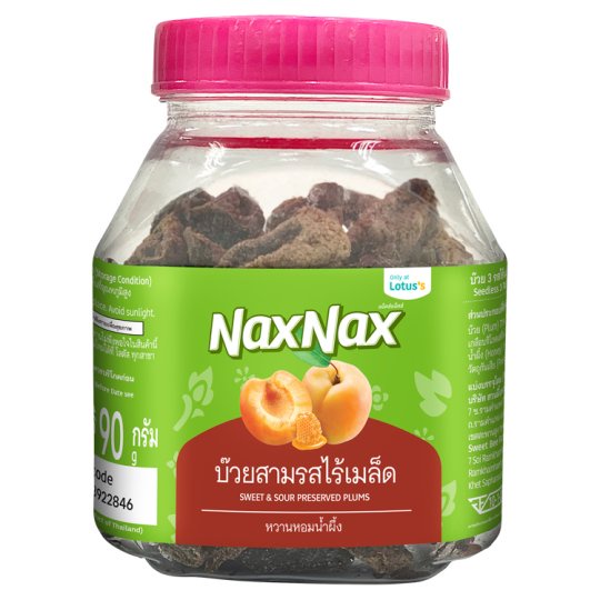 แน็คซ์แน็คซ์บ๊วยสามรสไร้เมล็ด 90กรัม NAXNAX SWEET SOUR PRESERVED PLUMS 90G.