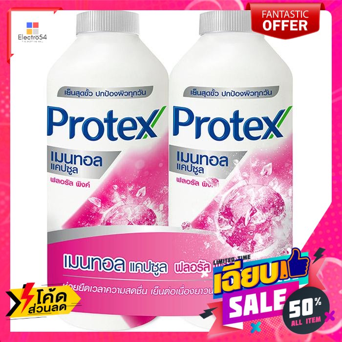 Protex(โพรเทคส์) โพรเทคส์ แป้งเย็น สูตรเมนทอล แคปซูล ฟลอรัล พิงค์ 280 ก. แพ็คคู่ Protex Cooling Powder Menthol Capsule F