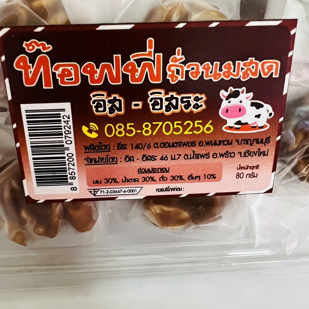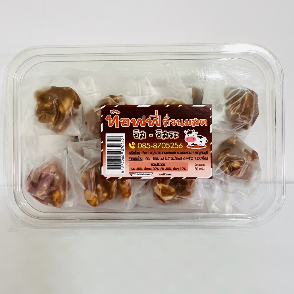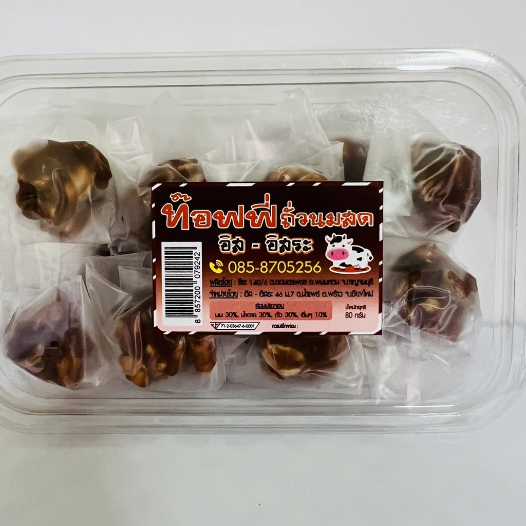 ท๊อฟฟี่ ถั่วนมสด ขนาด 80 กรัม ท๊อฟฟี่โบราณ ท๊อฟฟี่ถั่ว อิส-อิสระ