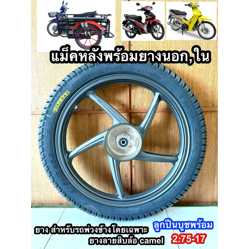 ล้อแม็กหลัง +พร้อมใส่ยางลายสิบล้อ2.75-17 เวฟทุกรุ่น หรือพ่วงข้าง