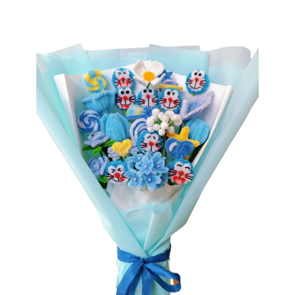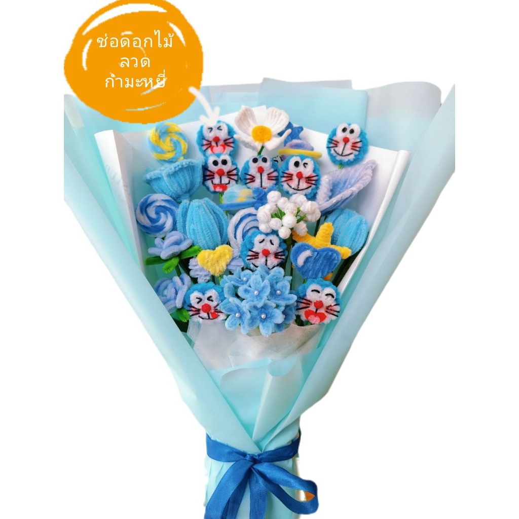 ช่อดอกไม้โดเรม่อน ลวดกำมะหยี่