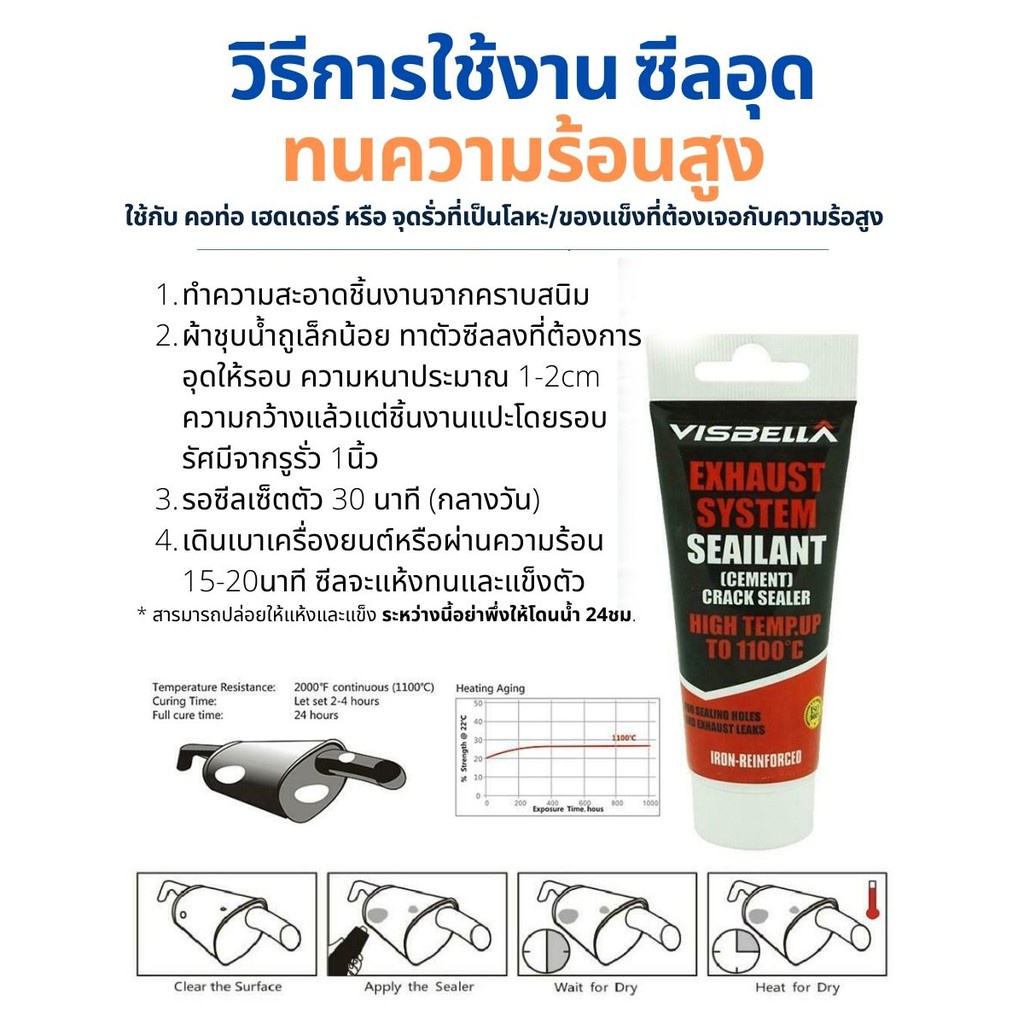 VISBELLA กาวซีเมนต์อุดรอยรั่ว ท่อระบบไอเสีย ซีลอุดรอยรั่วระบบท่อไอเสีย เฮดเดอร์รั่ว ทนร้อนสูง 75g