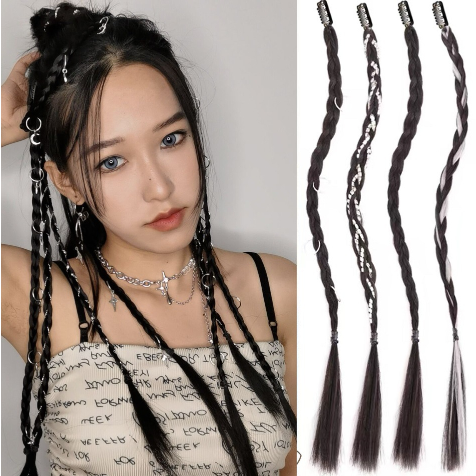[Beautiful Magpie] วิกผมบ็อกเซอร์ ไฮไลท์ แบบถักเปีย ไร้รอยต่อ Y2K