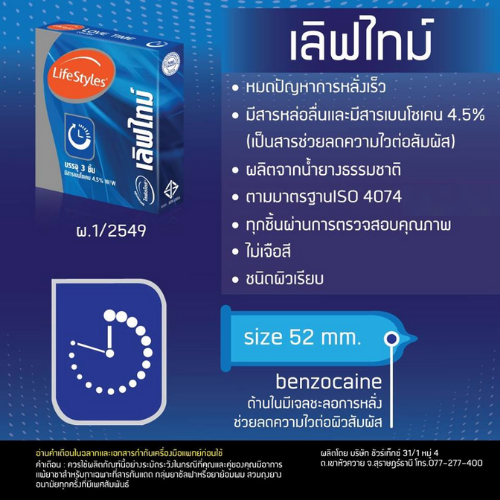 (6 แถม 6) LifeStyles Love Time ถุงยางอนามัย มีสารชะลอหลั่ง ขนาด 52 มม. บรรจุ 12 กล่อง (36 ชิ้น)
