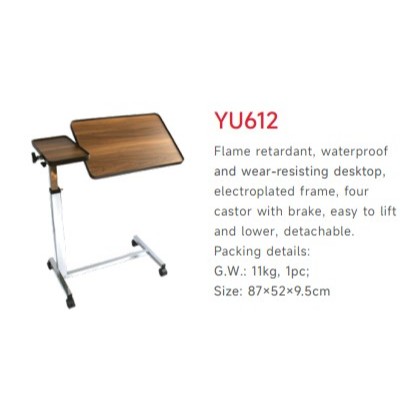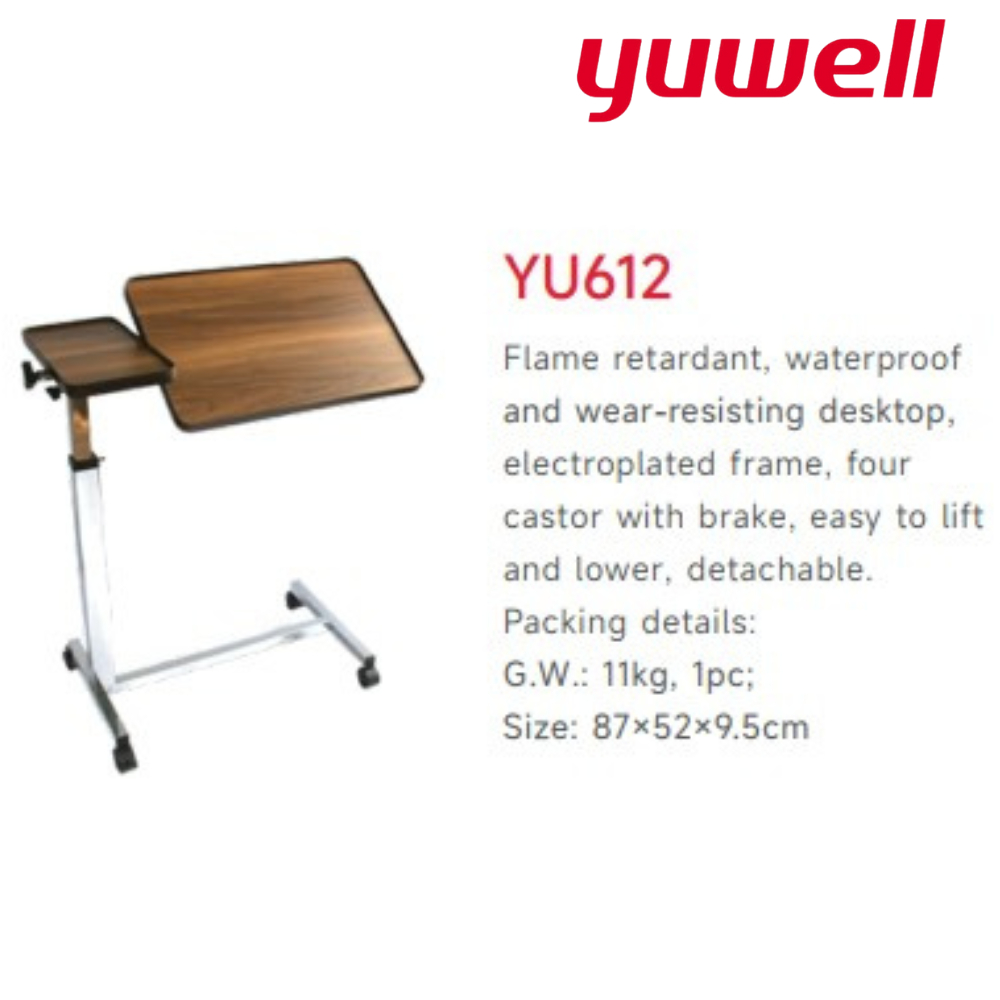 Yuwell Over Bed Table โต๊ะคร่อมเตียง โต๊ะอาหารอเนกประสงค์ ปรับความสูง ล้อล็อกได้ YU610 [รับประกัน 1 ปี]