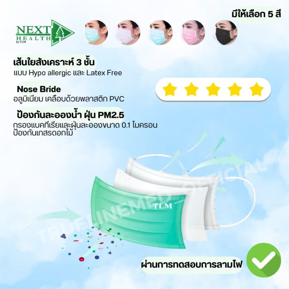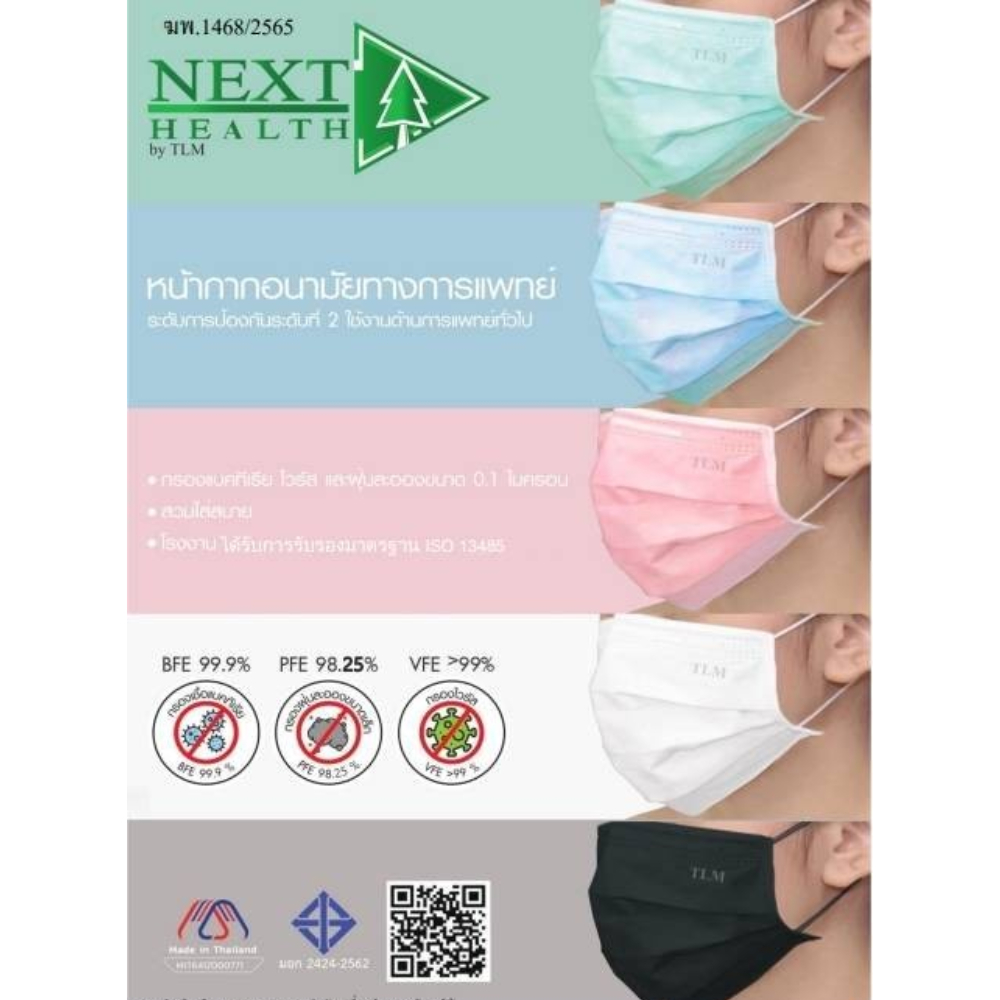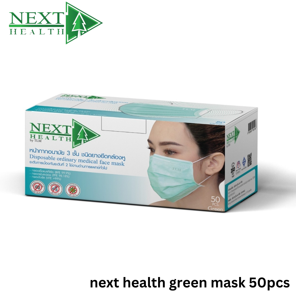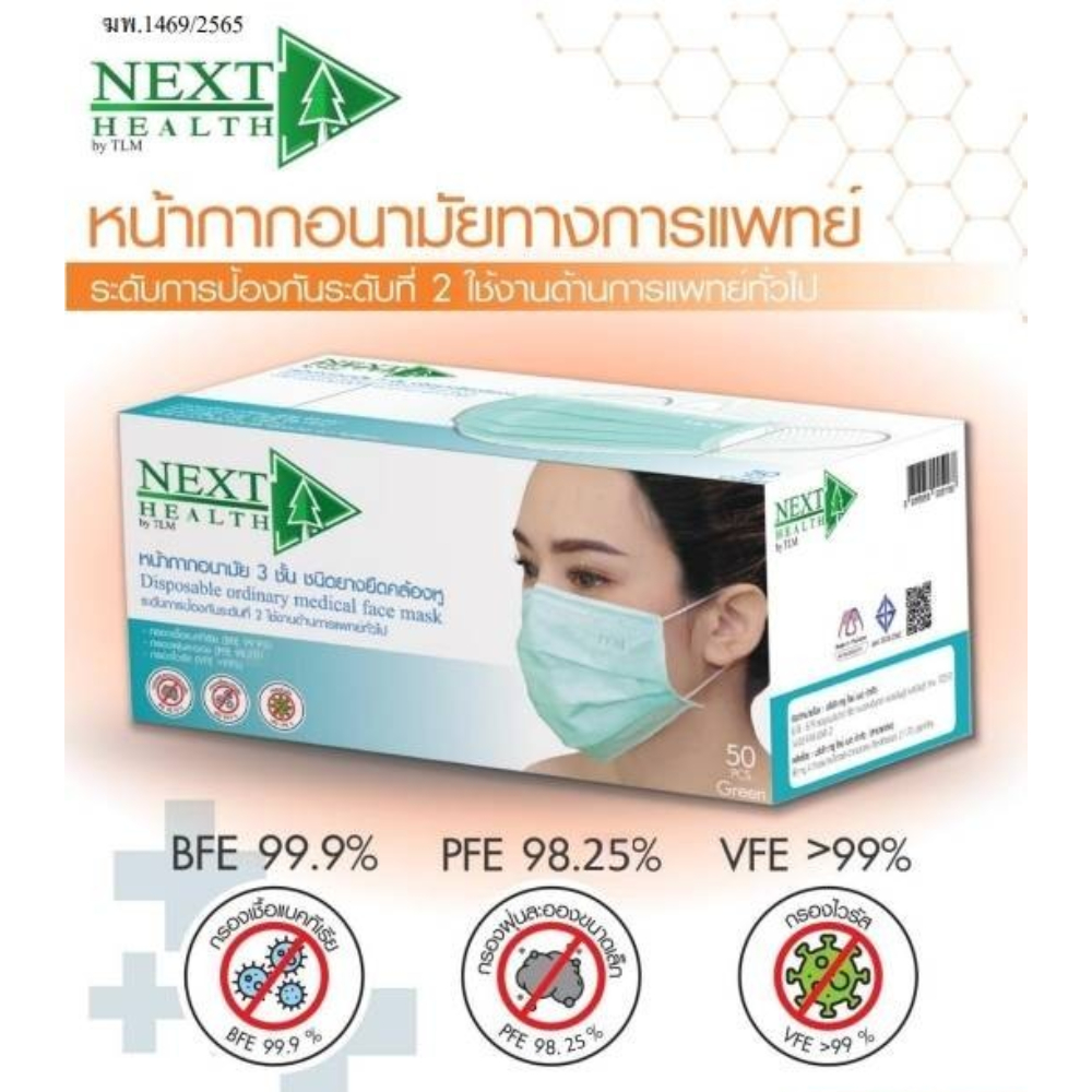 Next Health Disposable Medical Mask หน้ากากอนามัย เกรดการแพทย์ ปิดจมูก 3 ชั้น มีทั้งหมด 5 สี [50 ชิ้น/กล่อง]