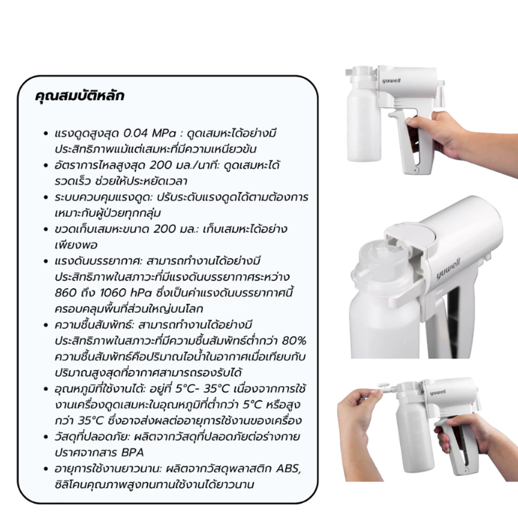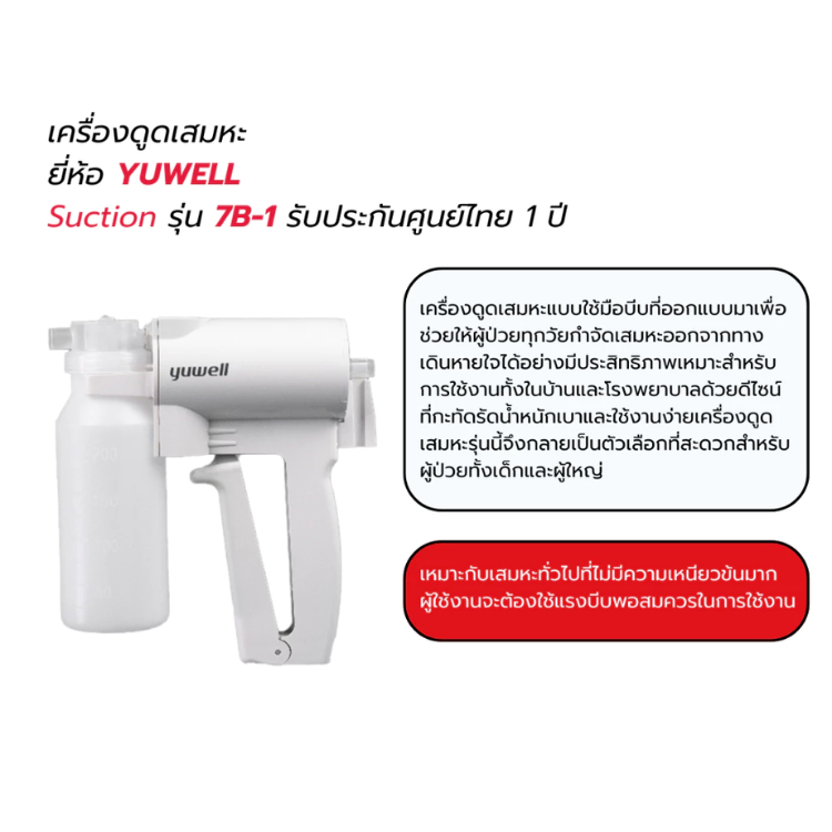 Yuwell Manual Suction Apparatus เครื่องดูดเสมหะแบบบีบมือ 7B-1 [รับประกันศูนย์ไทย 1 ปี]