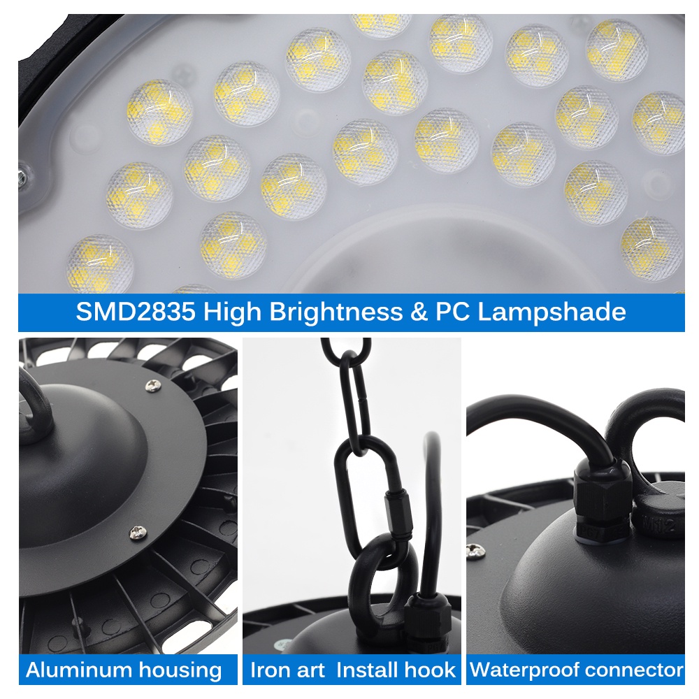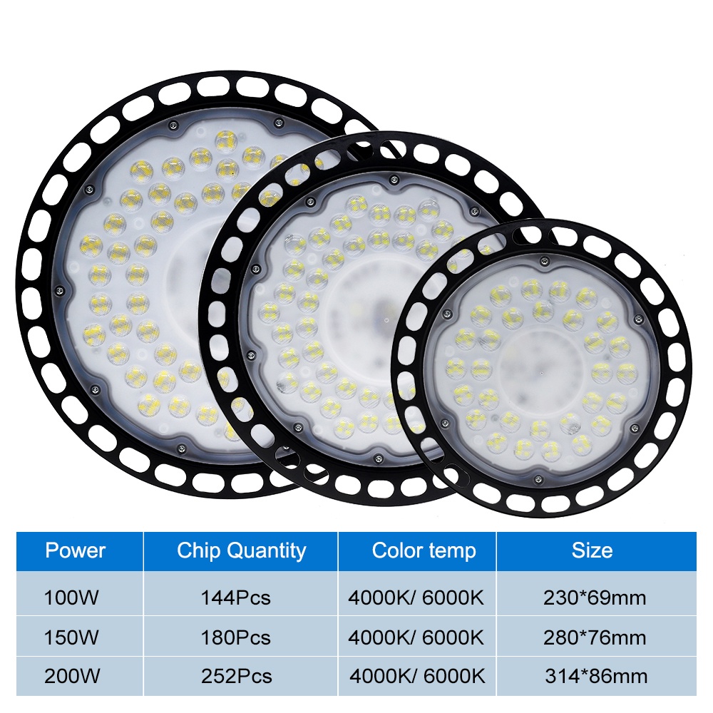 Super Bright UFO LED High Bay ไฟ 100W 150W 200W โคมไฟอุตสาหกรรมเชิงพาณิชย์กันน้ำสำหรับคลังสินค้า 220V LED Garage Lamp